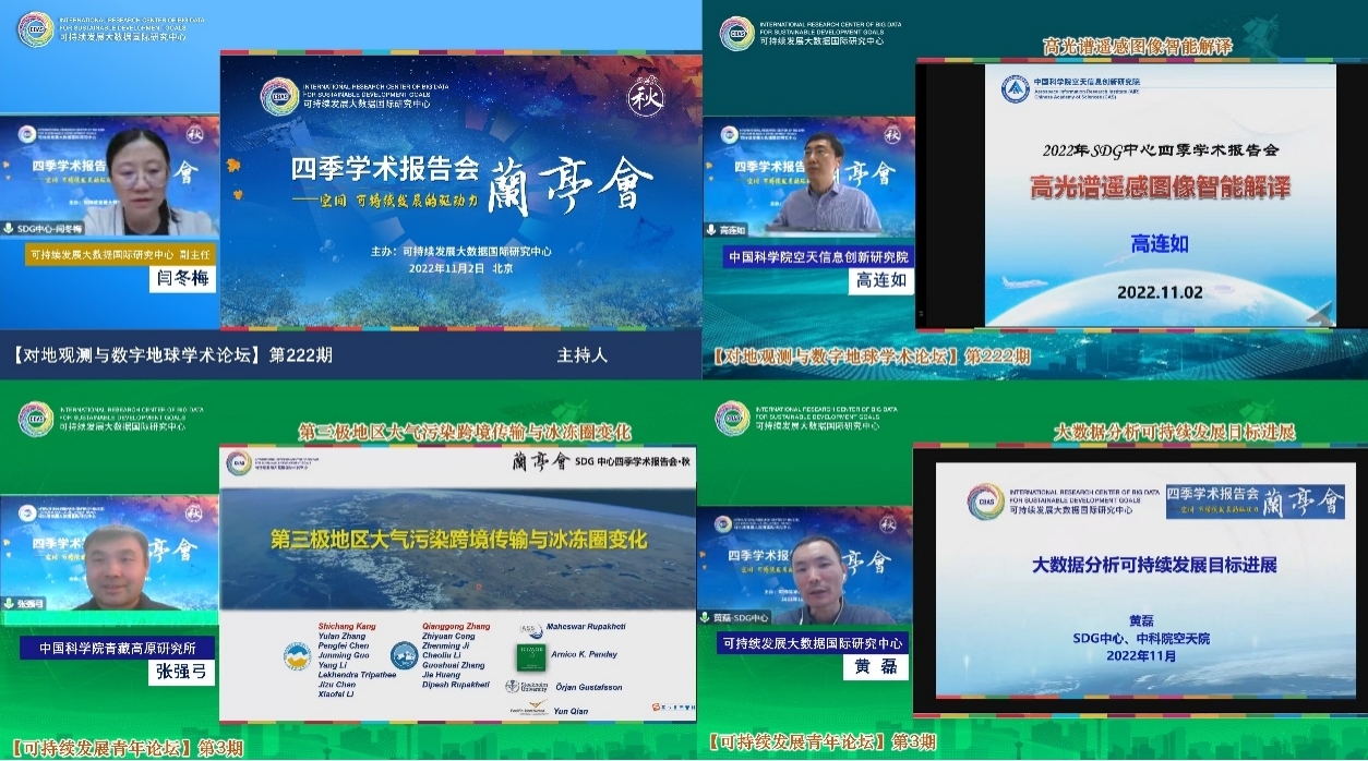 11月2日,可持续发展大数据国际研究中心(以下简称“SDG中心”)成功举办2022年度SDG中心四季学术报告会(兰亭会)·秋。此次报告会的主题为“空间:可持续发展的驱动力”,由SDG中心副主任闫冬梅研究员主持。