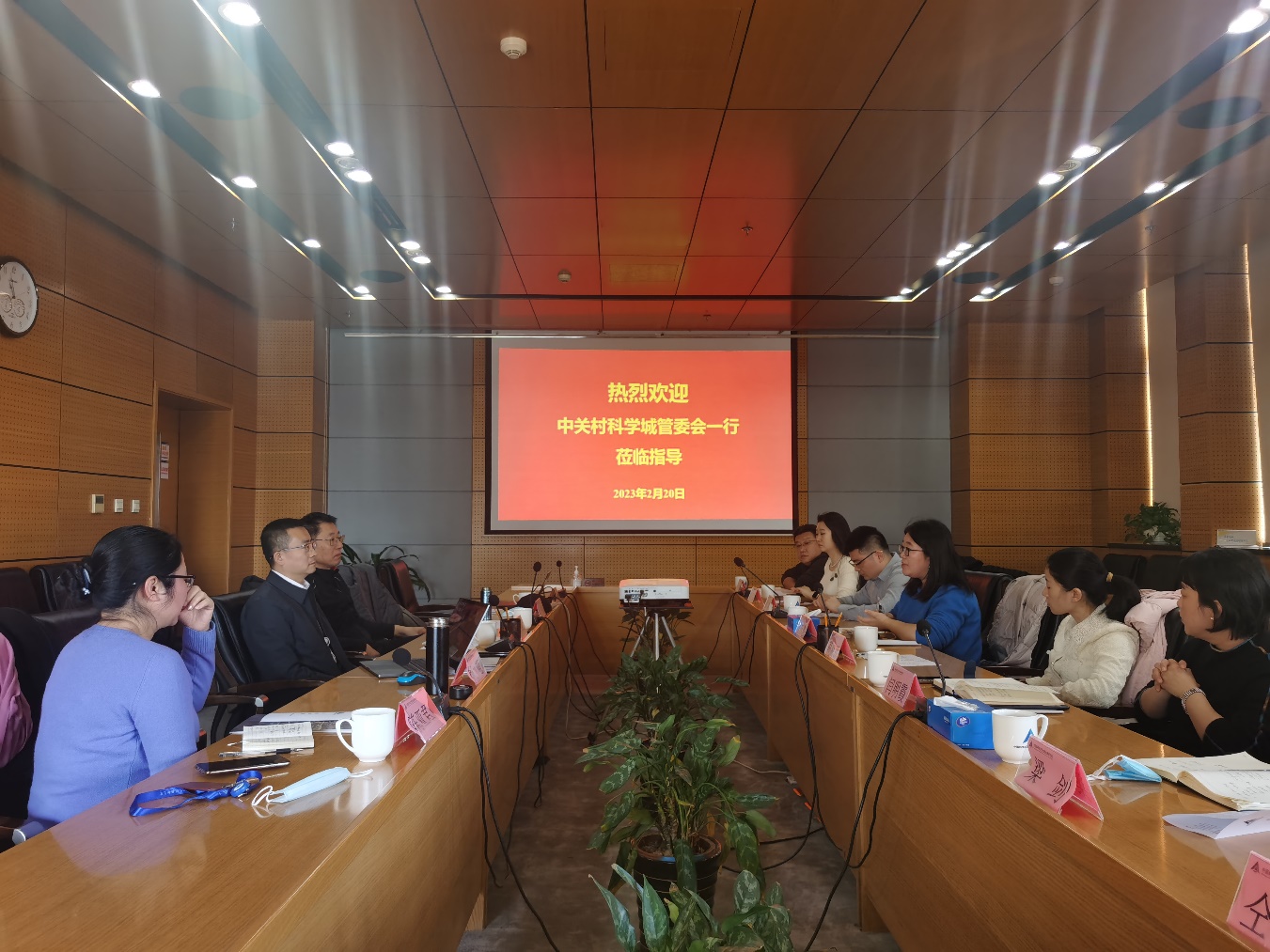 首先,中关村科学城管委会一行全面了解了空天院的整体情况、科研布局、产业规划以及京区企业现状,认真听取了中科特思信息技术公司的产品体系、融资进度和未来发展。随后,中关村科学城管委会介绍了园区规划和支持政策。