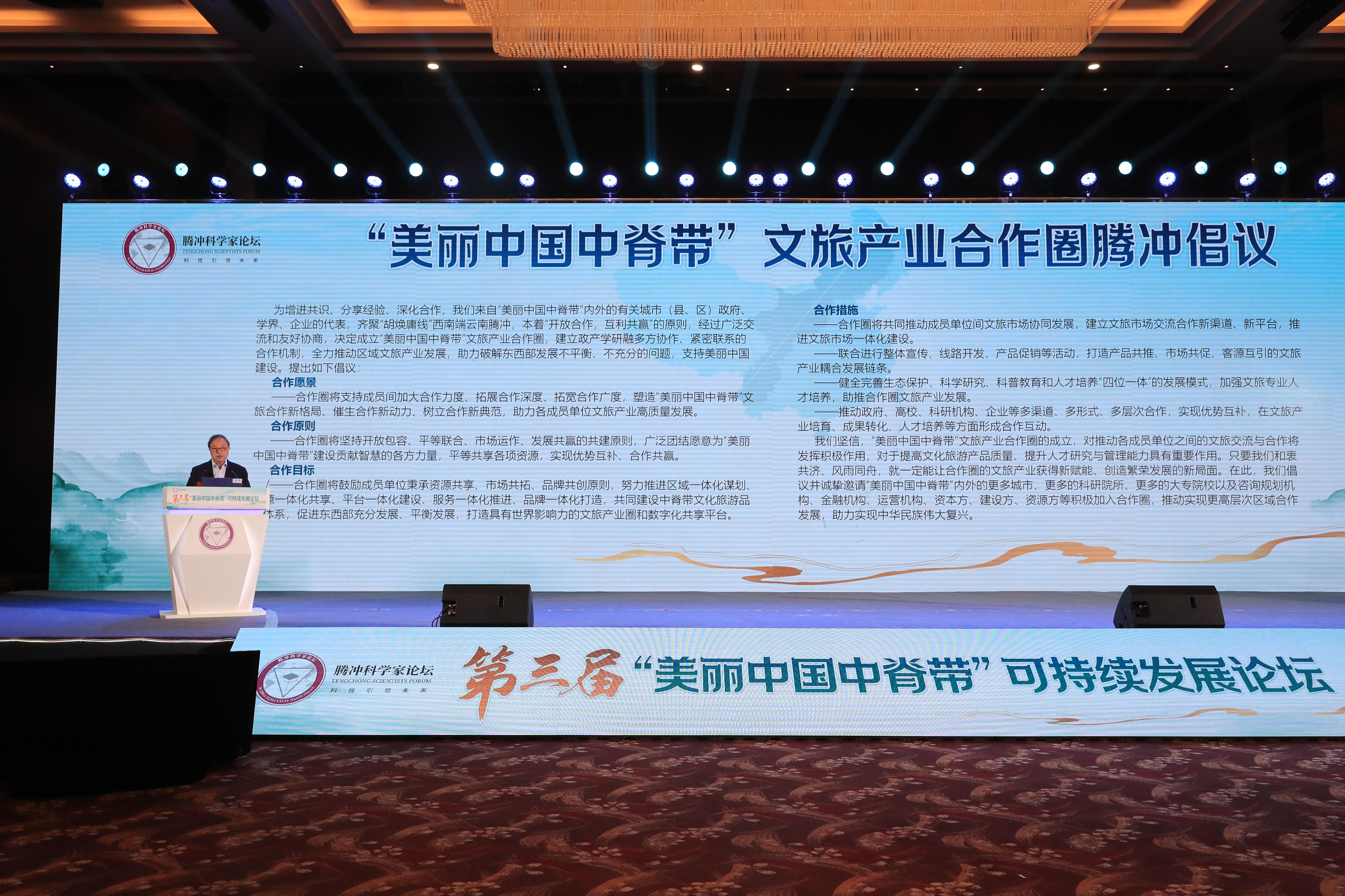 闭幕式上,论坛发布“‘美丽中国中脊带’文旅产业合作圈腾冲倡议”,来自全国不同地区、不同单位的近四十位代表签署“‘美丽中国中脊带’文旅产业合作圈框架协议”,从文旅产业合作圈出发,建立政产学研融多方协作、紧密联系的合作机制,全力推动区域文旅产业发展,助力破解东西部发展不平衡、不充分的问题,支持美丽中国建设。