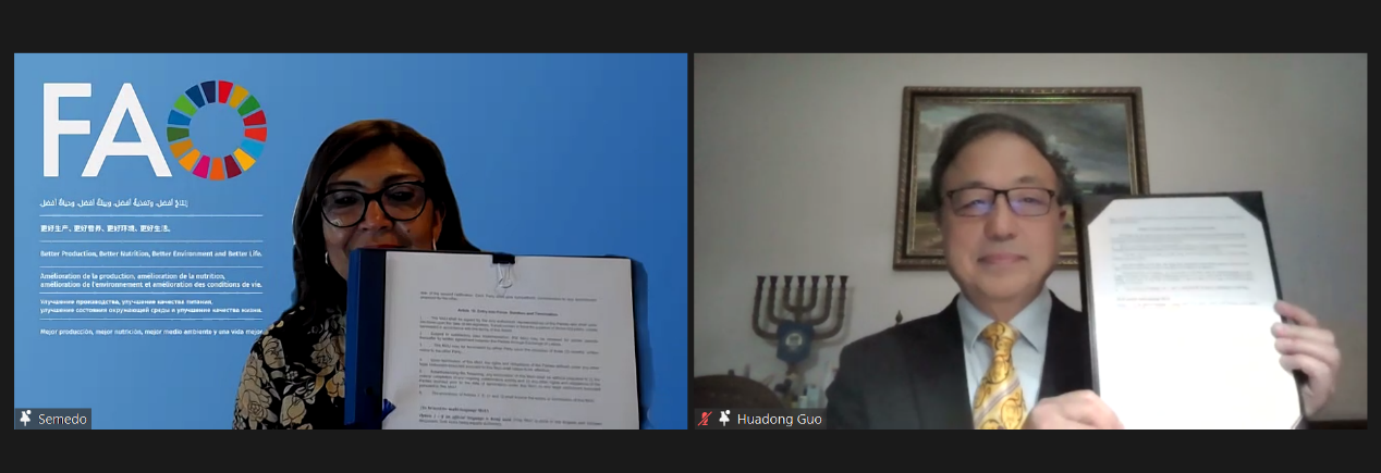 FAO土地与水资源司、林业司相关官员,SDG中心相关人员等近20人在线参加协议签署仪式