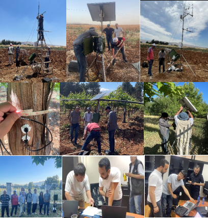 6月9-16日,中国科学院空天信息创新研究院(以下简称“空天院”)遥感科学国家重点实验室副研究员朱伟伟带队,联合北京雨根科技有限公司、黎巴嫩国家科学研究委员会国家遥感中心、黎巴嫩农业研究所的工作人员,通过走访调研和讨论完成了4个通量观测站的选址,在黎巴嫩贝卡河谷(Beqaa Valley)北部Kfrdan LARI农场(果树林)、中部黎巴嫩农业研究所灌溉实验站(农田)、南部贝鲁特阿拉伯大学环境与发展研究中心野外实验站(混合林与农田),完成了涡动相关仪观测系统、茎杆液流计观测系统等观测仪器的安装建设,与各实验站原有的蒸渗仪、气象站及波文比观测系统共同形成了黎巴嫩不同下垫面水热通量观测网络。期间,中方团队对黎方技术人员开展了地面站定期维护、数据接收与数据处理的技术培训。