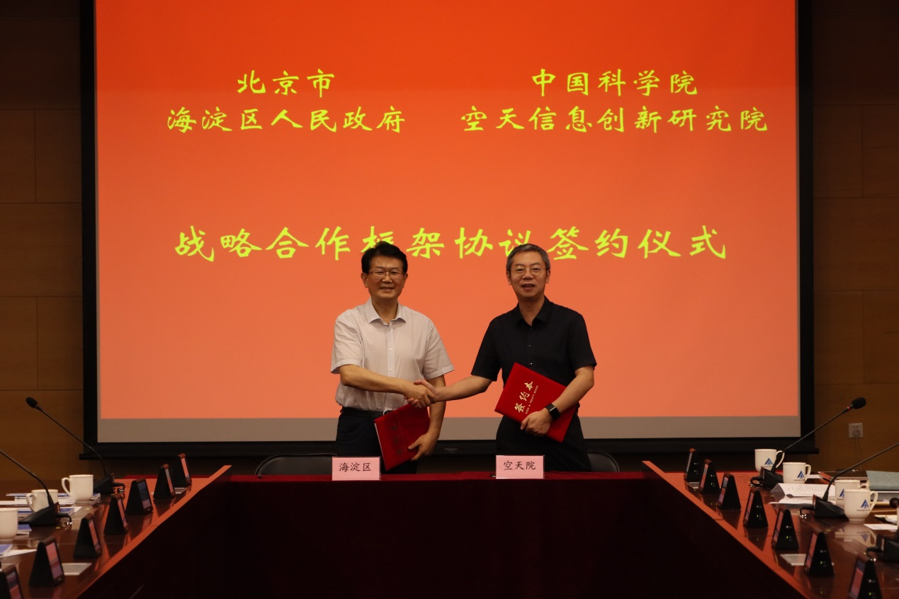 8月23日,北京市海淀区副区长武凯一行到访中国科学院空天信息创新研究院(空天院)。双方进行科技合作会谈并签署战略合作协议,北京中科特思信息科技有限公司与北京中关村科学城创新发展有限公司签署投资协议。