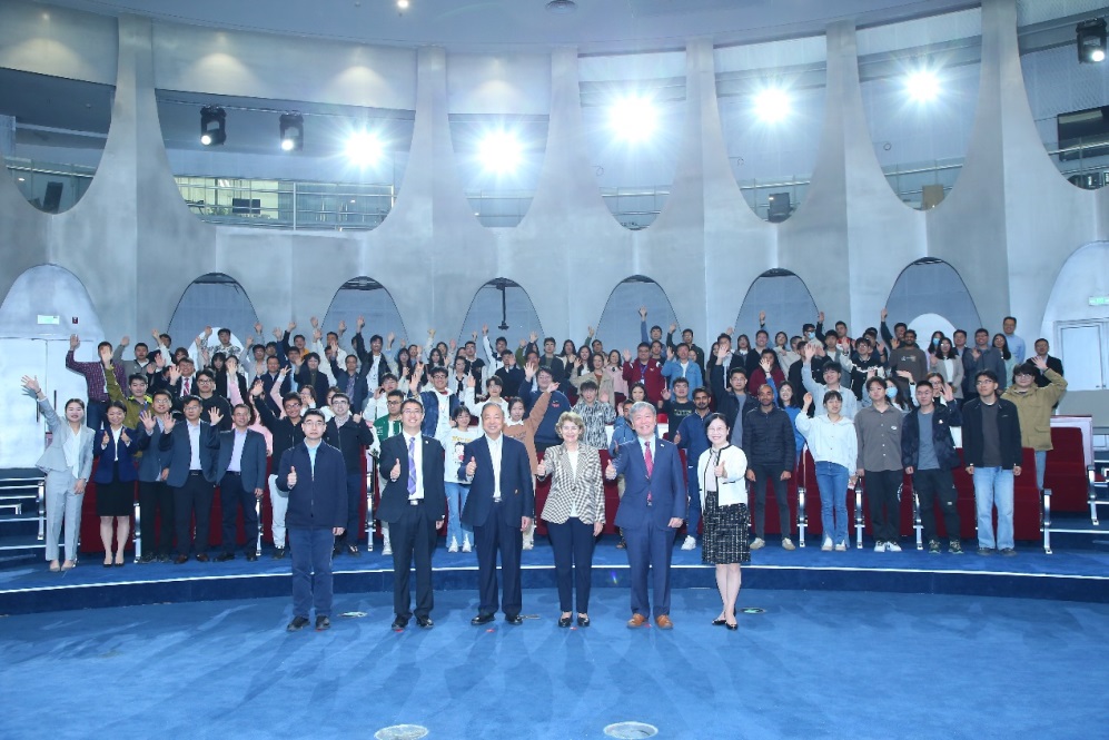 灾害风险综合研究计划(IRDR)国际项目办公室执行主任韩群力,SDG中心常务副主任陈方、副主任闫冬梅等陪同参观,百余师生参加活动。