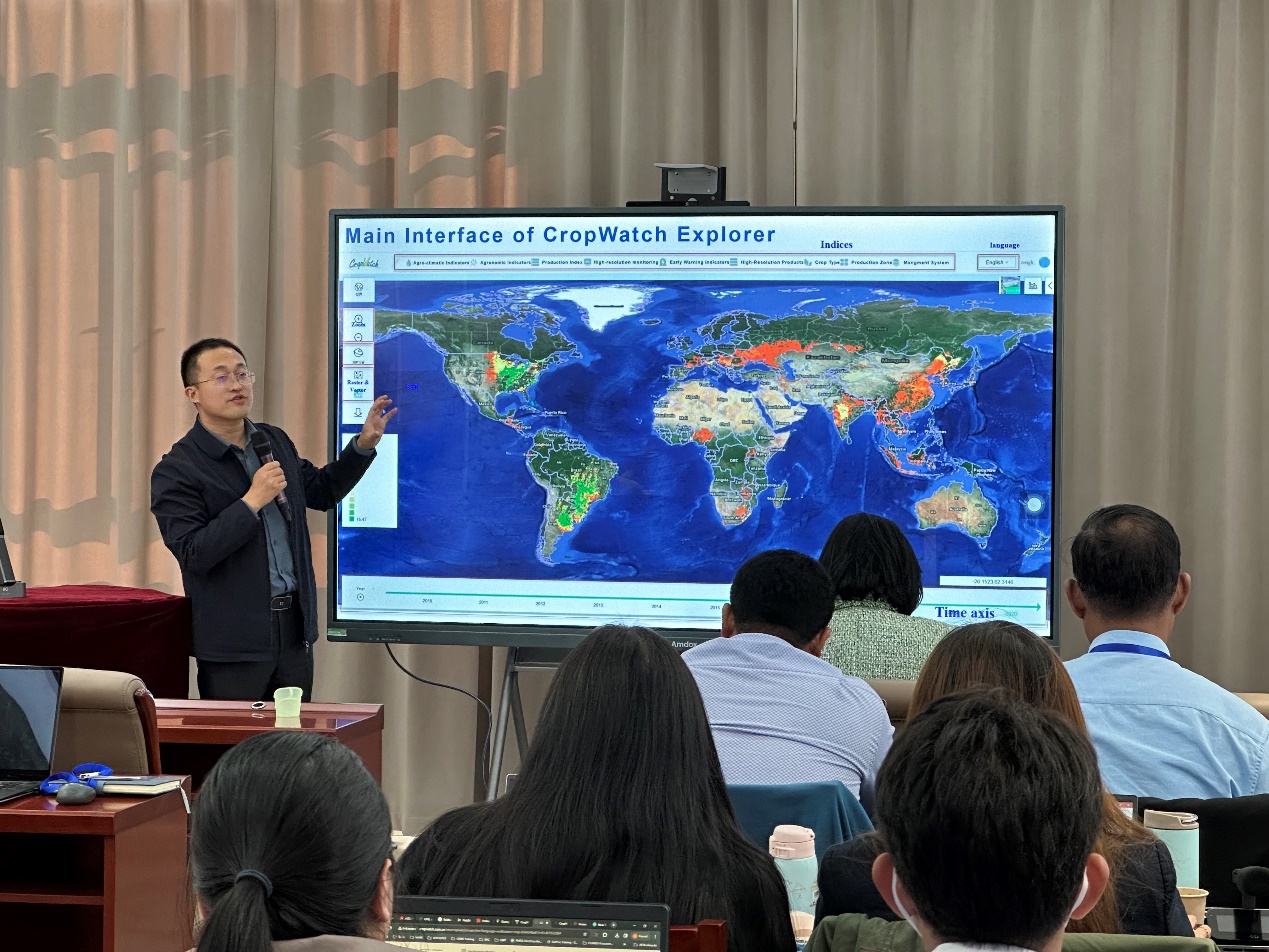 论坛召开前,举办了为期3天的农情监测技术赋能农情信息获取的能力建设培训班。培训中,空天院CropWatch团队副研究员张淼、曾红伟以及助理研究员覃星力、马宗瀚等基于定制化的全球农情遥感监测云平台,为学员提供系统的农情信息地面实测数据采集、多层级农业气象-农情-生产形势信息获取、高分辨率水稻遥感制图、灌溉耕地遥感监测、作物单产自主遥感监测等先进农情监测技术与模块培训,并指导参训人员利用各自准备的地面实测数据,开展水稻制图和作物单产监测模型标定工作。
