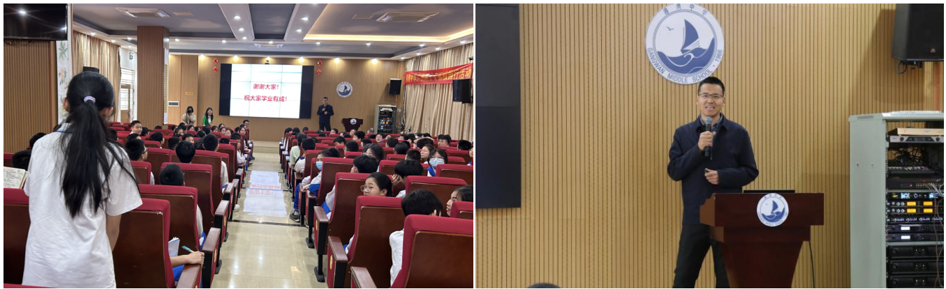 王天武以深入浅出的方式,揭示太赫兹科技的神秘面纱,从电磁波的基本原理到太赫兹波的独特性质,从前沿研究动态到未来应用前景,用生动的语言和丰富的案例,使复杂的科学原理通俗易懂。他现场与学生互动、耐心解答问题,引导他们思考、探索科学的奥秘,鼓励学生们保持对科学的热情和好奇心,勇攀科学高峰。