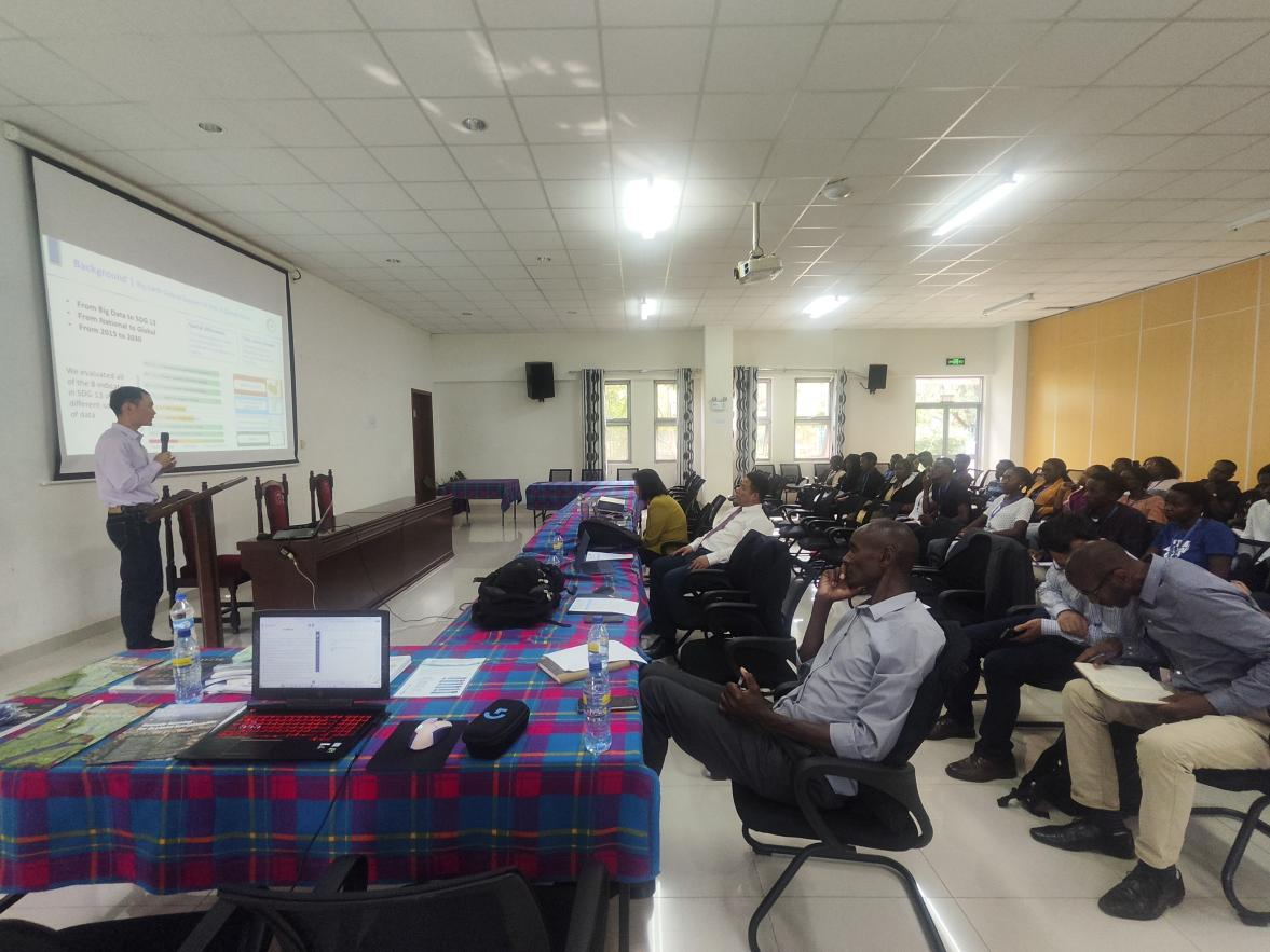 JKUAT大学GIS系前系主任Thomas Ngigi博士向SDG中心介绍JKUAT地理信息工程学科的教学背景。随后,SDG中心专家依次为中-非中心和JKUAT专家及学员做培训报告。
