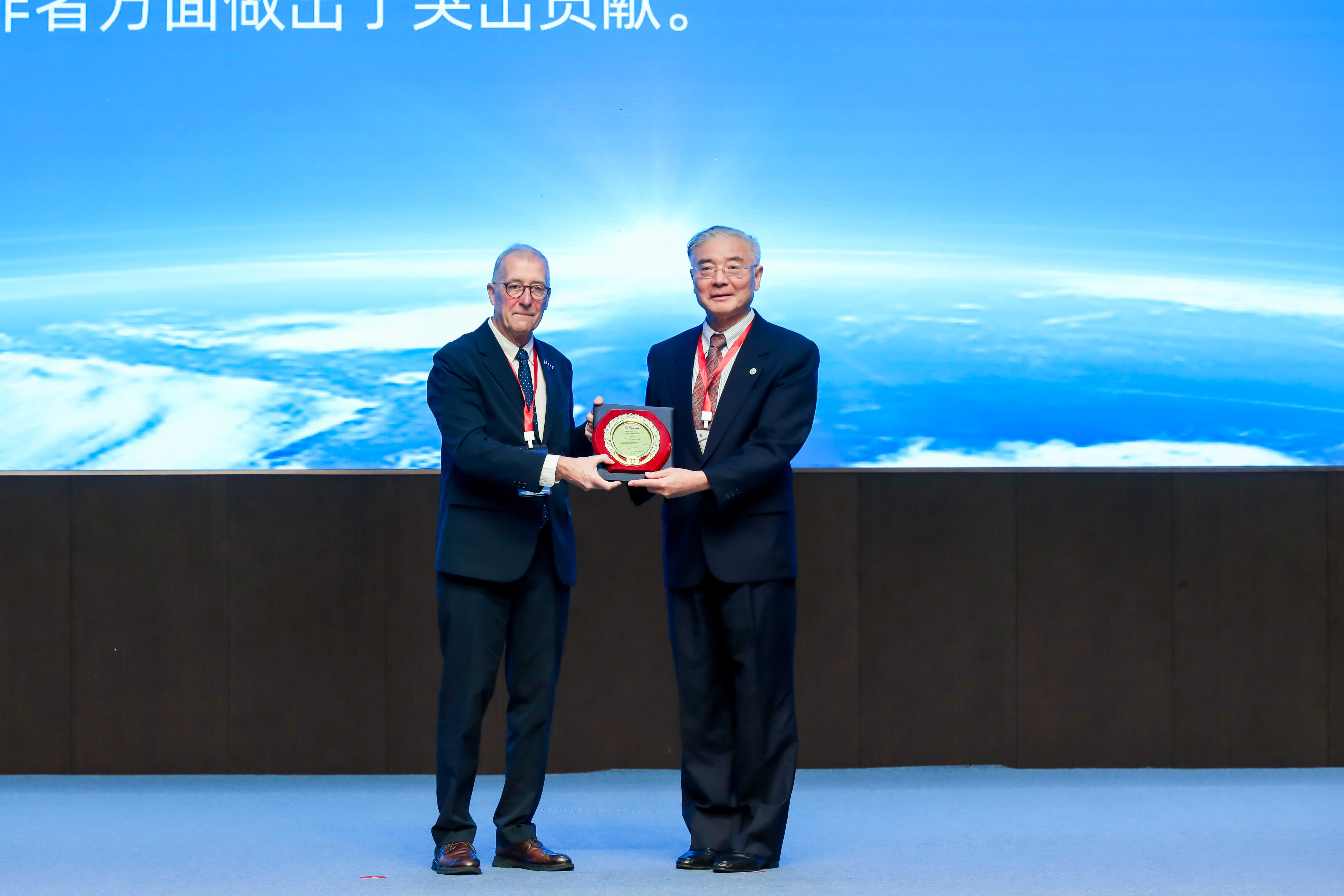 迈克尔·梅多斯向郭华东院士颁发“数字地球杰出科技成就奖”