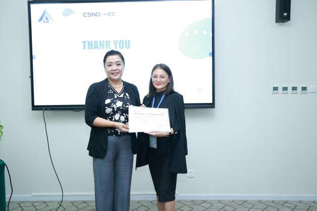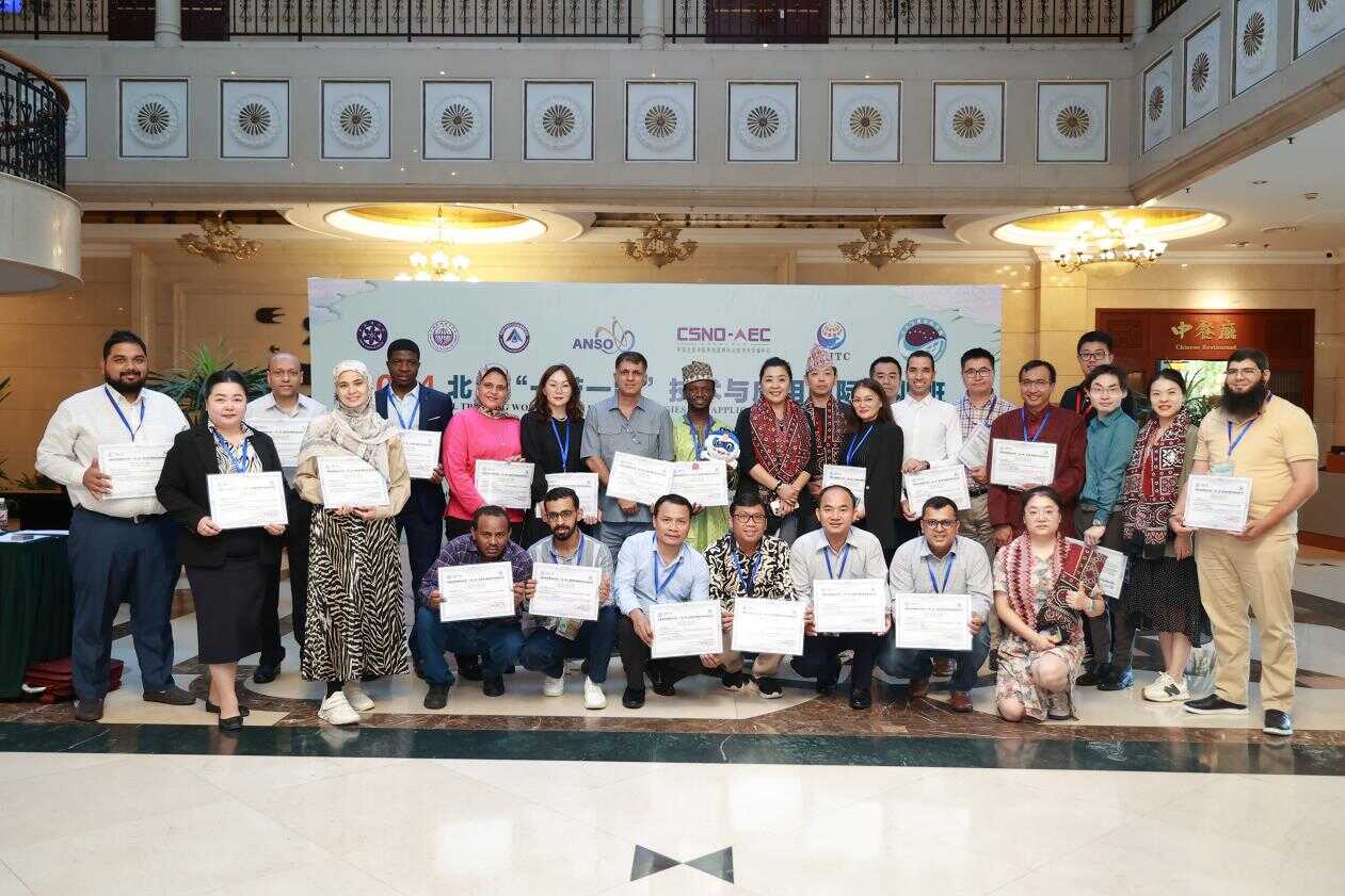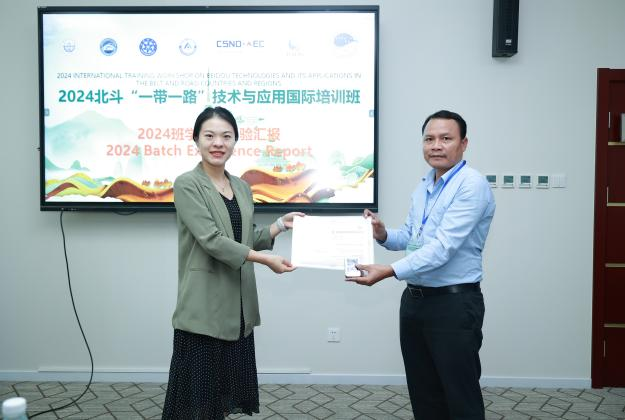 闭幕式上,学员代表进行培训班学习成果展示。中国卫星导航系统管理办公室学术交流中心主任郝巍娜向学员们介绍正在筹建中的北斗国际数据联盟相关情况,号召大家广泛关注并支持联盟筹建工。她与学术交流中心副主任肖迪共同为通过结业考试的学员颁发结业证书。