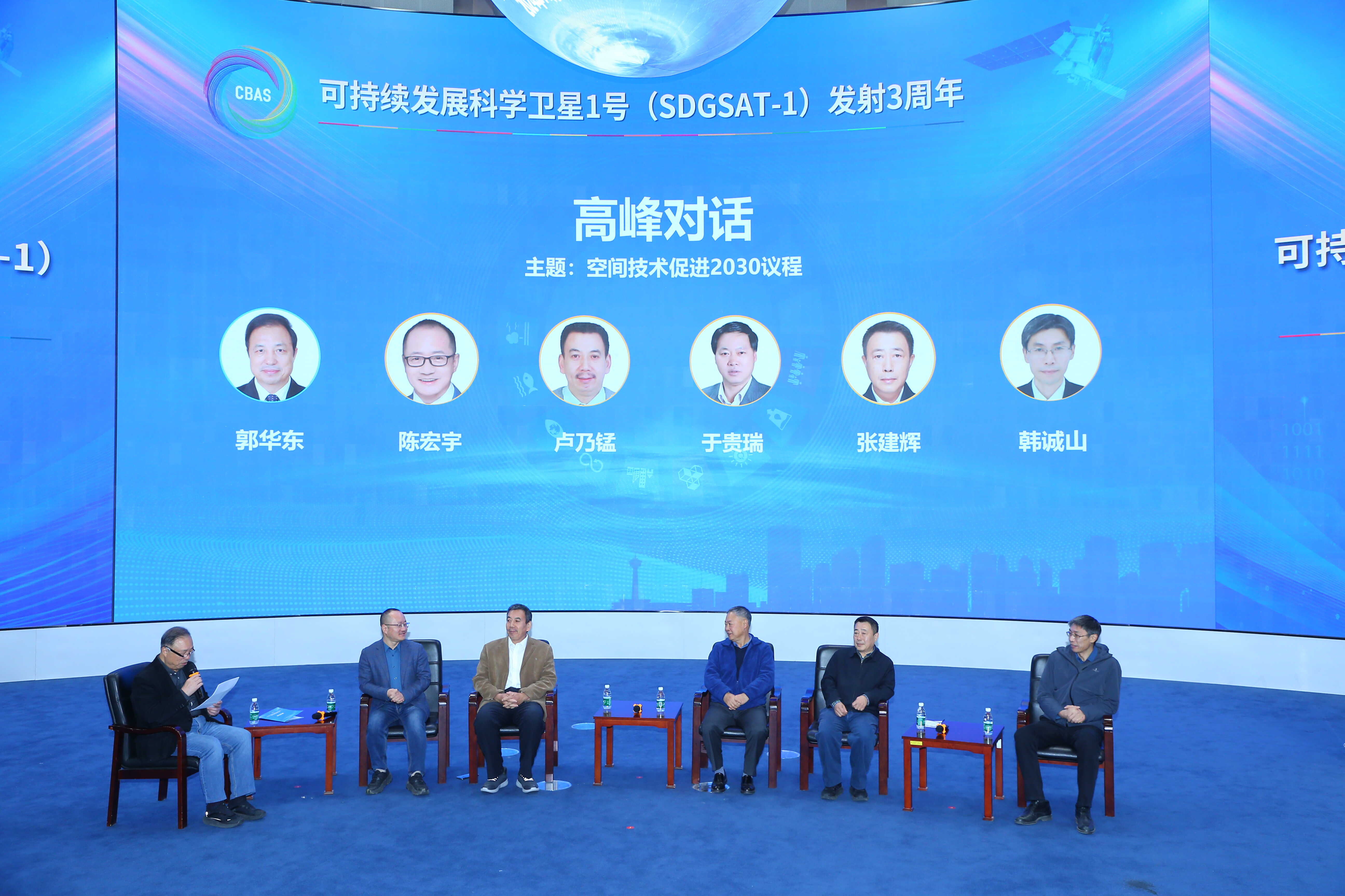 科技部原部长徐冠华院士、第77届联合国大会主席克勒希·乔鲍(Csaba Kőrösi)、联合国教科文组织前自然科学助理总干事柯瑞卿·卡隆基( Gretchen Kalonji)教授、中国科学院院士于贵瑞、中国科学院院士朴世龙、SDGSAT-1卫星工程副总指挥邹自明、中国科学院空天信息创新研究院副院长张兵等嘉宾出席会议,SDG中心主任、SDGSAT-1首席科学家郭华东院士主持高峰对话环节。