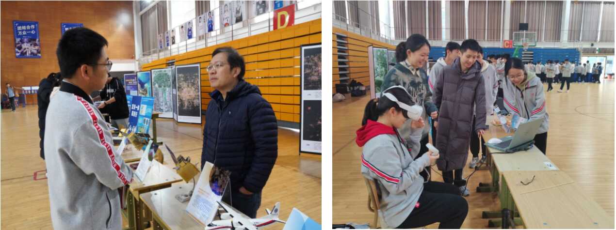 活动组织“空天之眼”遥感影像展、国之重器模型展以及VR互动体验等内容,卫星及载荷、月球巡视器和月球车、浮空器、航空遥感系统等模型和样机一一亮相,生动直观地展示空天院在空天信息领域的最新科研工作,吸引了广大师生关注。活动过程中,科研人员和学生志愿者与学生们深入交流空天信息相关领域知识,让学生们体会到了空天信息领域科学的魅力,激发其科学兴趣。