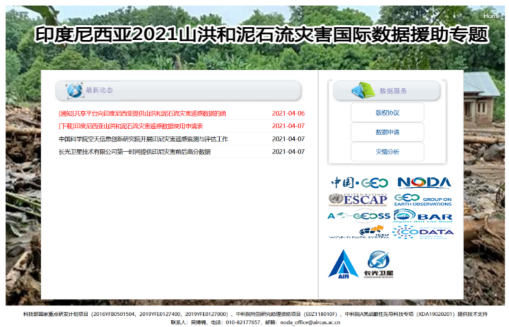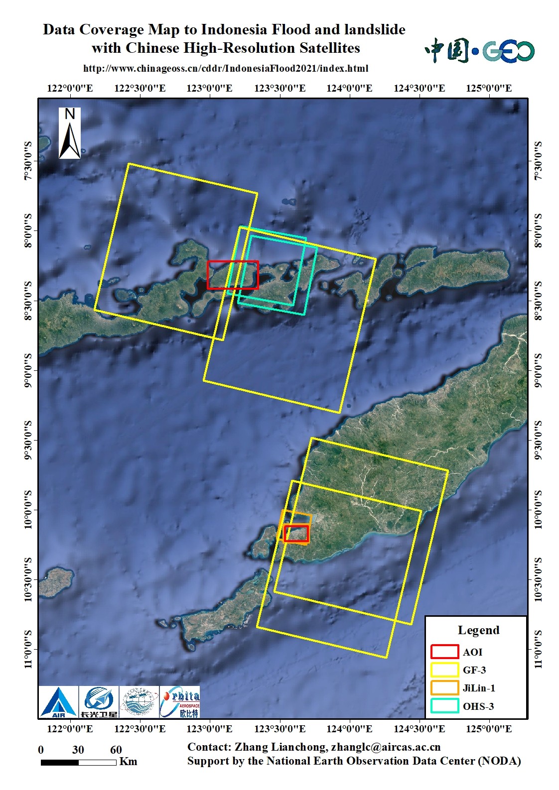 4月4日,印度尼西亚东努沙登加拉省发生山洪和泥石流灾害,造成重大人员伤亡。应联合国亚太经济与社会委员会(UNESCAP)请求,在科技部国家遥感中心组织下,国家综合地球观测数据共享平台、国家对地观测科学数据中心第一时间启动ChinaGEO灾害数据应急响应机制(CDDR),面向各分中心及合作单位征集灾害前后高分辨率遥感数据。这是国际上第一个针对该事件的数据应急行动。