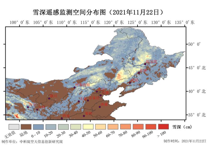 2021年11月至2022年2月底,针对我国东北、华北和南方各省雪灾雪情以及南方雨雪冰冻等情况,中国科学院空天信息创新研究院五室邱玉宝科研团队采用遥感高频微波信号,结合大气校正技术,发展了针对新、薄层雪冰敏感的卫星遥感监测服务,形成快速监测能力,并有效服务于我国东北及华北北部区域雪情监测,满足冬奥赛区积雪覆盖与深度变化监测保障需求,协同应急管理部国家减灾中心支撑我国冰雪灾情监服务。