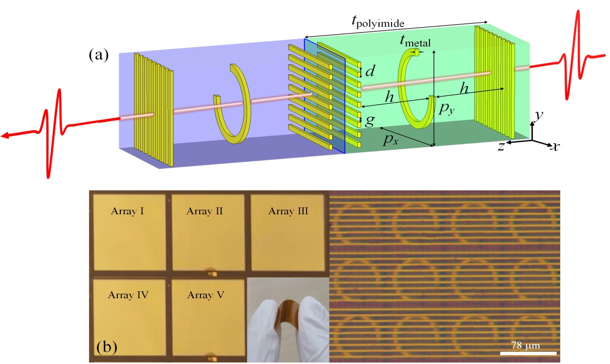 近日,空天信息创新研究院广州园区王天武研究团队关于太赫兹(THz)载波包络移相器的研发成果,发表于《先进光学材料》(Advanced Optical Materials)。其研究论文题为《基于超材料的柔性太赫兹载波包络移相器(Flexible THz Carrier-Envelope Phase Shifter Based on Metamaterials)》。