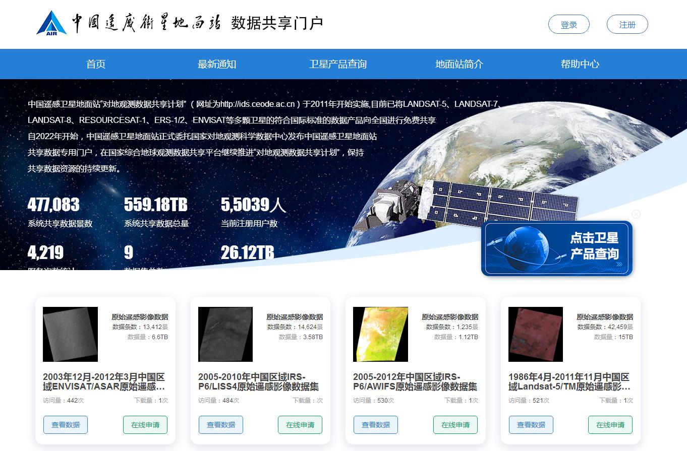 空天信息创新研究院-中国遥感卫星地面站是国家发展改革委布局建设的国家重大科技基础设施,也是我国历史最长的遥感数据资料库。自2011年起,地面站通过对地观测数据共享网(网址为http://ids.ceode.ac.cn/)开始实施“对地观测数据共享计划”,向国内外用户免费共享存档的部分公益遥感卫星影像数据。