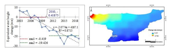 图5 2003~2019年罗布泊及周边区域地下水时间过程和空间变化率分布图