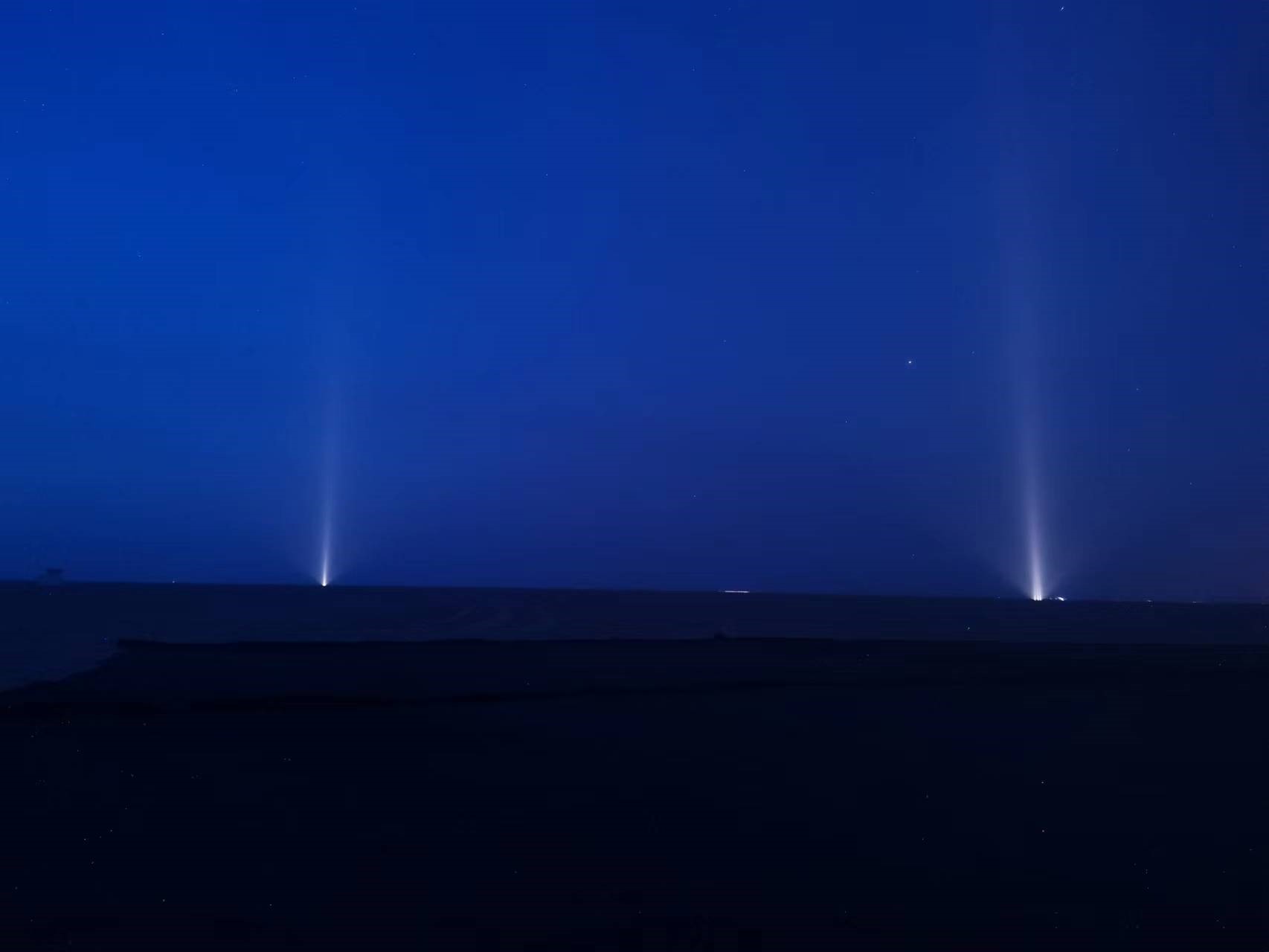 卫星过境时,灯阵靶标设备发出的光柱直达天空