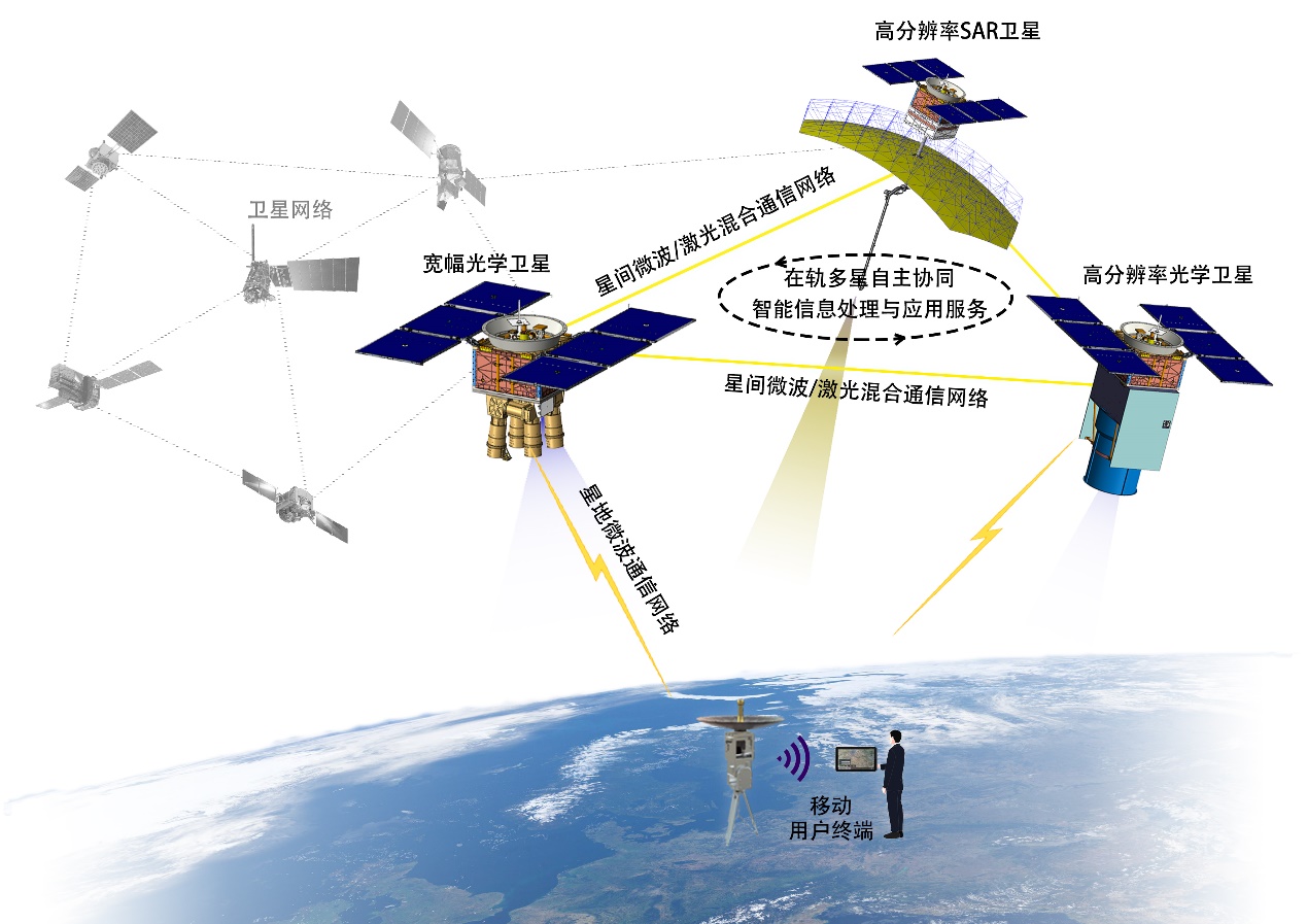 2016年,中科院针对天基系统网络化和智能化发展趋势,面向千星规模的星座在轨组网协同实时应用服务需求,提出构建天基资源网络化服务体系的总体构想,支持空天院牵头,联合微小卫星创新研究院、国家空间中心、中国科技大学、信息工程研究所等国内优势单位,开展天基资源网络化服务体系所需的星间激光通信组网、在轨多星协同任务规划控制、在轨单星数据实时处理与多星信息融合、在轨面向终端的网络化信息服务、在轨信息安全防护等关键技术攻关。