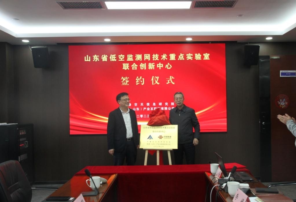 2023年3月8日,齐鲁空天信息研究院(以下简称“齐鲁院”)与联通(山东)产业互联网有限公司举行合作签约暨“山东省低空监测网技术重点实验室·联合创新中心”揭牌仪式。中国科学院空天信息创新研究院副院长、齐鲁院执行院长付琨,山东联通副总经理崔波出席仪式并致辞,共同为“山东省低空监测网技术重点实验室·联合创新中心”揭牌。齐鲁院低空网络信息技术部主任李峰,省产互总经理姜丁代表双方签署协议。