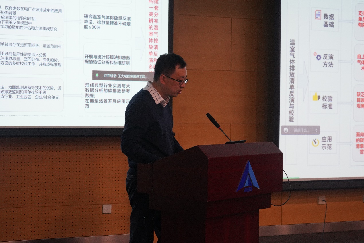 蔡榕代表项目承担单位致欢迎辞,表示卫星遥感、激光雷达、地面设备等“星空地”监测手段,为评估全球、国家、区域、企业等不同尺度温室气体减排目标实现状况提供了技术平台。特别是随着区块链、物联网、大数据等信息技术的快速发展,利用空天信息技术赋能“双碳”已成必然方向。