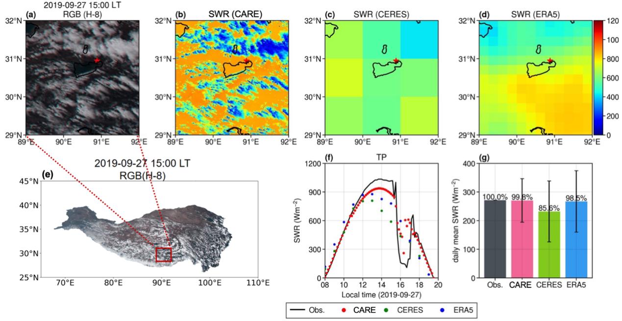 图3.青藏高原地表太阳辐射遥感监测结果优于同类产品