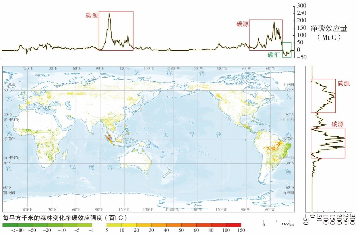 由于森林覆盖面积变化,导致碳损失和碳吸收也均呈现加速增长态势。全球森林损毁导致的碳损失量为34.22 Gt C,全球森林恢复碳吸收为9.84 Gt C。另外,全球不透水面扩张导致碳损失约为1.04 Gt C。