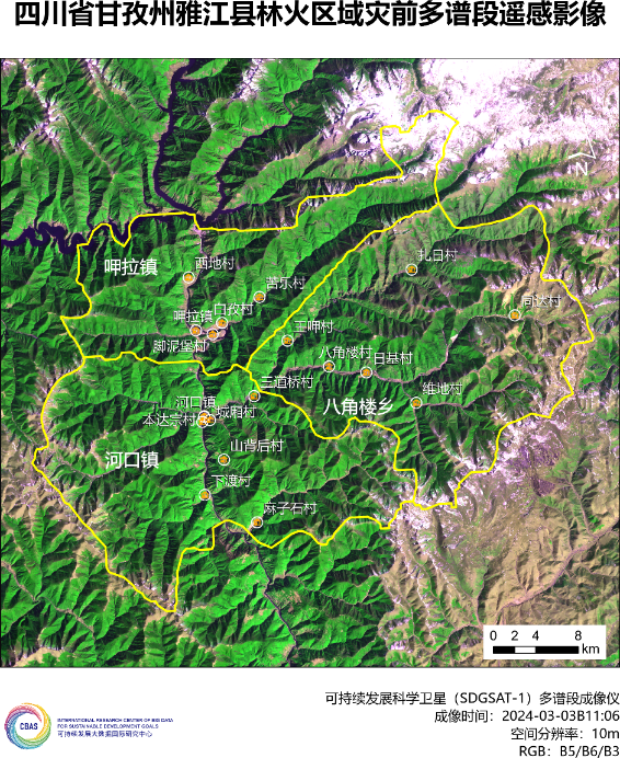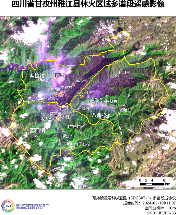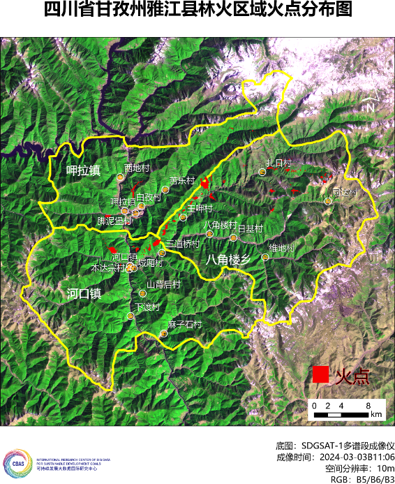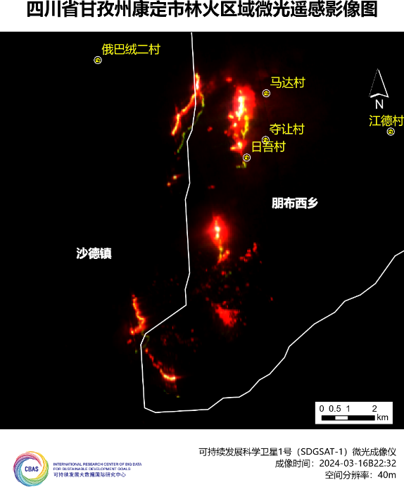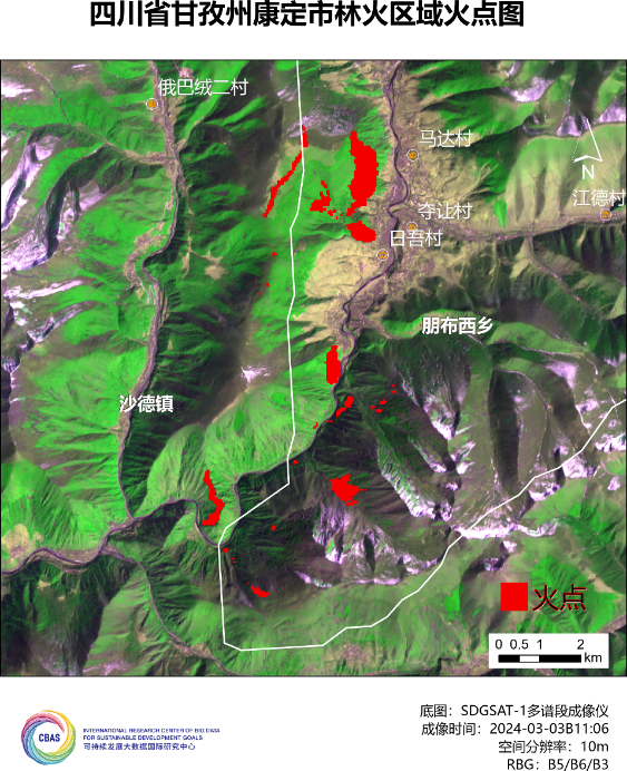 3月15日,四川省甘孜州发生森林山火,受大风影响,火势蔓延扩大,引起社会广泛关注。可持续发展大数据国际研究中心(SDG中心)启动卫星应急遥感观测,规划可持续发展科学卫星1号(SDGSAT-1)对灾区成像,并开展灾前灾后影像数据分析。