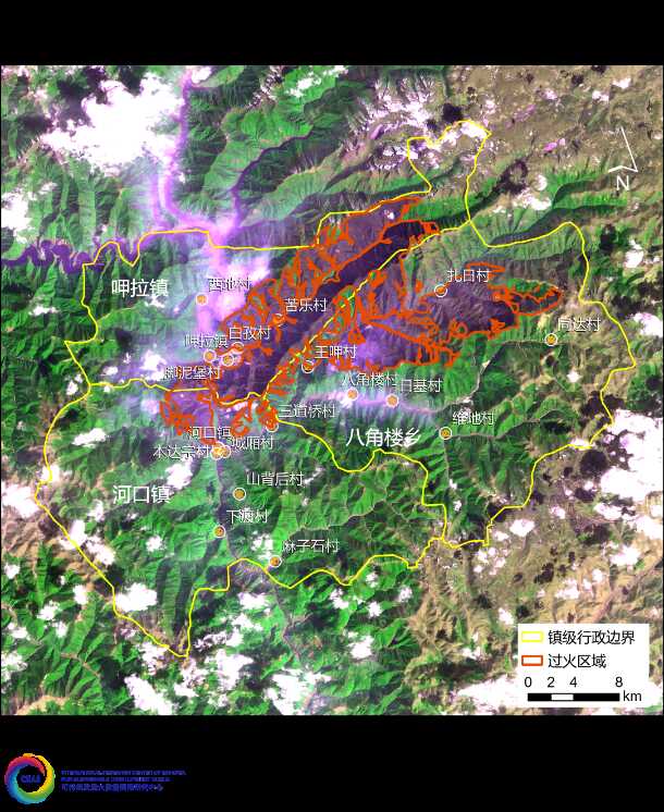 图5 雅江县过火区域示意图