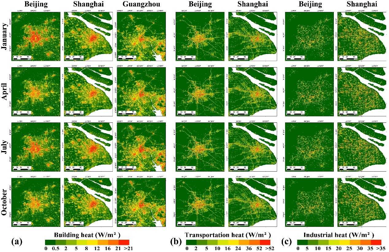 人为热在气候模拟、热驱动规律、生态环境评估和可持续发展等研究中发挥重要作用。然而,时空异质性人为热数据难以通过测量的方式直接获取,阻碍城市热环境研究。