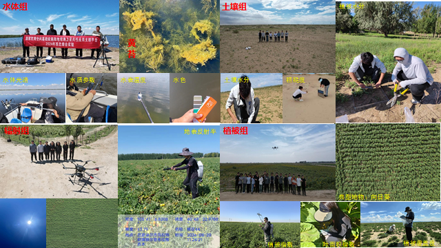 本次实验主要面向乌梁素海流域“山水林田湖草沙”一体化监测需求,综合实施大范围、多要素协同观测,提升国产空基卫星在区域尺度生态保护修复工程中的综合应用能力。地面观测时间跨度为2周,采集了几何定位控制点、地面高程、地表反射率、水体反射率、水表温度、水体悬浮物浓度、水体叶绿素浓度、土壤含水量、土壤盐碱度、地面粗糙度、地表温度、地表发射率、地表覆盖、植被含水量、植被覆盖度、植被高度、叶面积指数、气溶胶光学厚度、大气含水量等数据。实验共采集样方超过500个,数据条目超过2万条(原始数据量达150GB),形成了19种共性产品检验数据集。