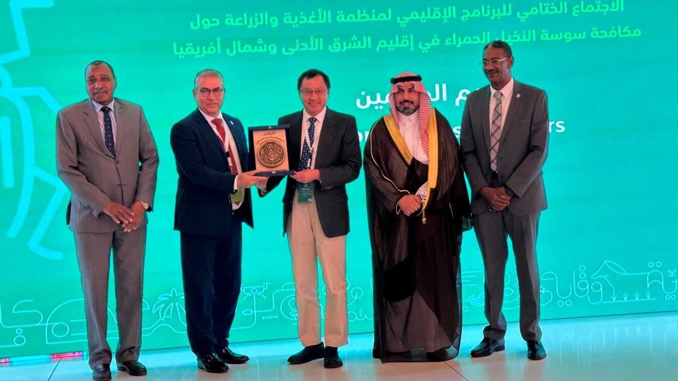 近日,中国科学院空天信息创新研究院(空天院)研究员黄文江因在全球红棕橡甲根早期遥感监测和损失评估方面做出的贡献,在联合国粮食及农业组织(Food and Agriculture Organization of United Nations, FAO)在沙特阿拉伯吉达举行的近东和北非红棕橡甲根除计划总结会上,获得FAO颁发的突出贡献奖。
