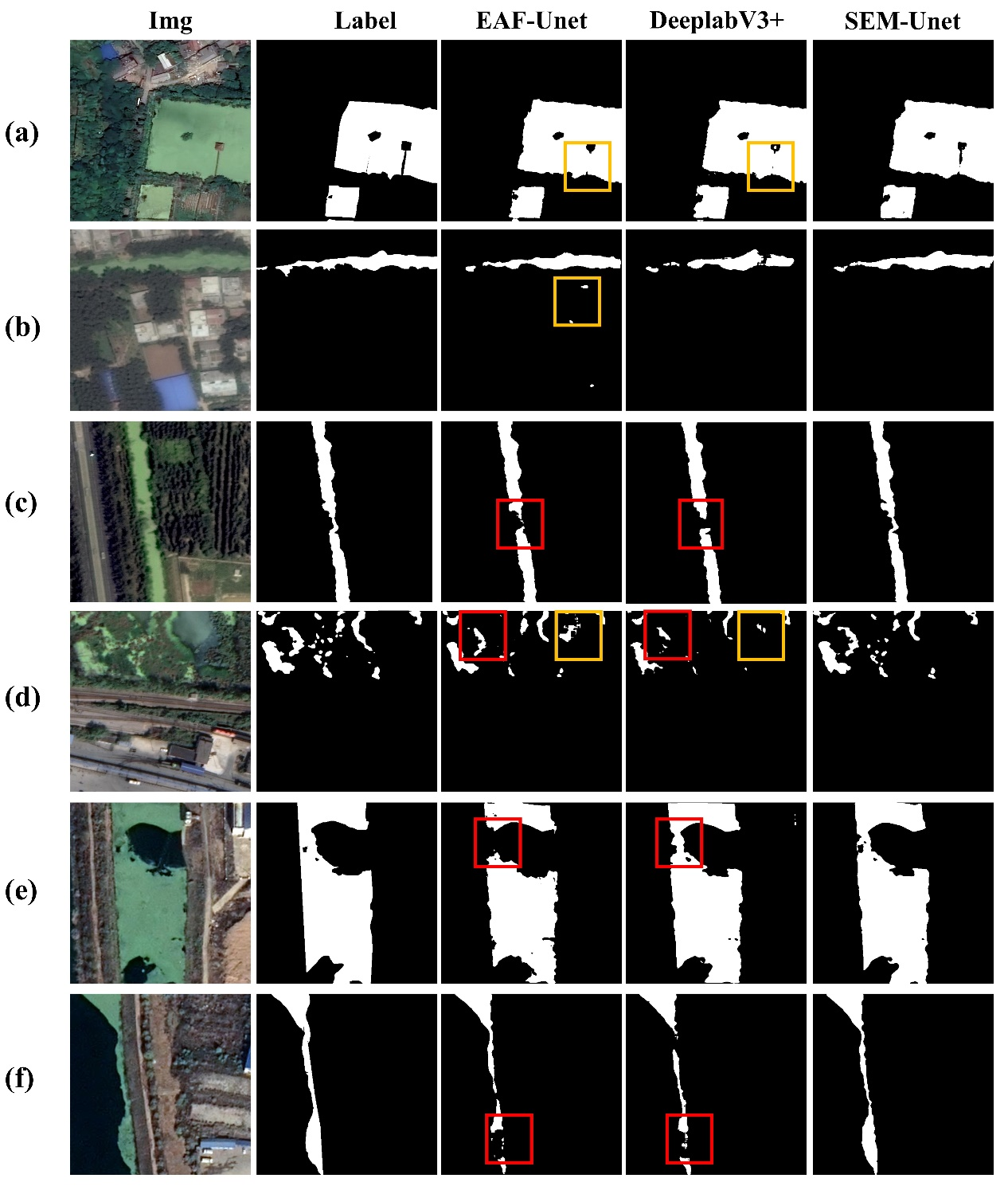实验结果显示,采用ASGI波段组合显著提高模型的识别精度和IoU值,并且SEM-Unet模型在保持轻量化的同时,展现了较高的识别精度。尤其,在富营养化严重的海河流域应用中,该模型仍能有效识别浮萍水华型水体,其整体识别精度达到85.11%,虚警率(FPR)为27.27%,漏检率(FNR)仅为4%。这一成果为水体环境监测提供高效的技术支持。