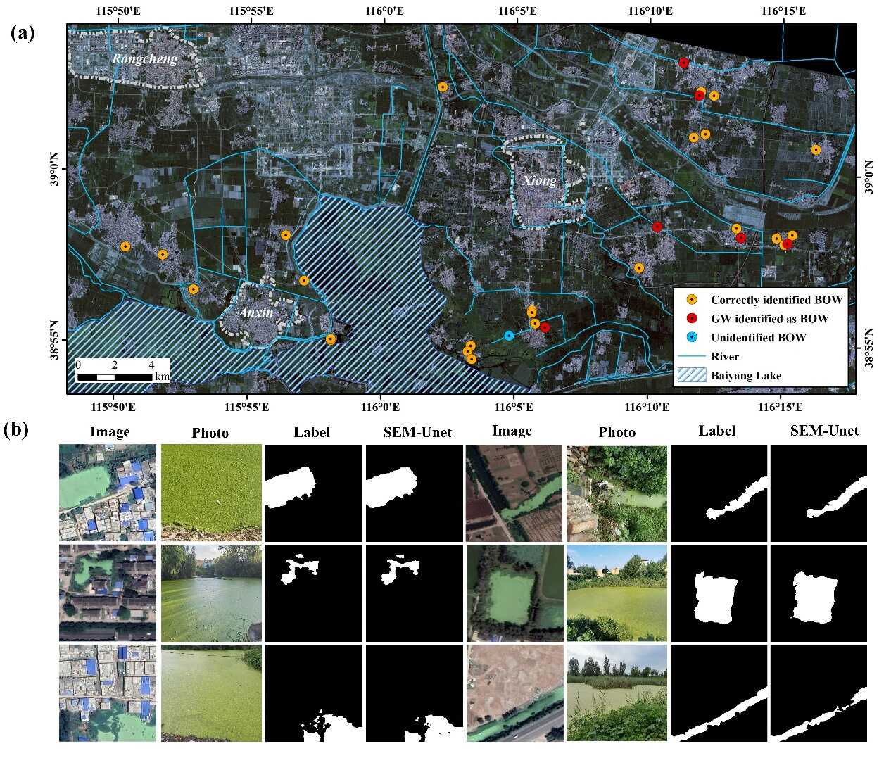 近日,可持续发展大数据国际研究中心(SDG中心)在富营养化坑塘及农村黑臭水体遥感监测方面取得新进展。研究人员针对水体表面覆盖浮萍或水华的坑塘研发一种基于深度学习模型的遥感提取方法。