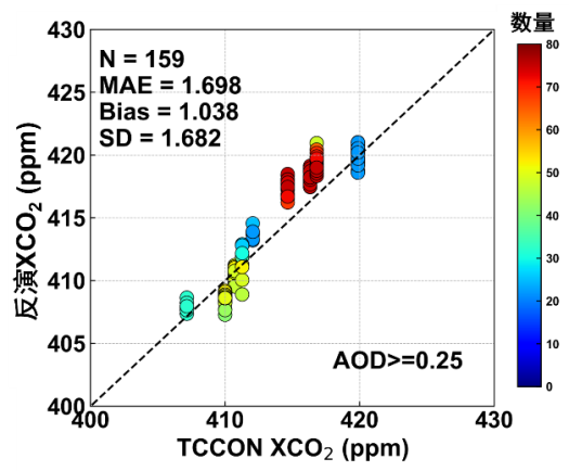 该研究模型可有效提升气溶胶污染背景下二氧化碳柱浓度遥感反演精度和数据量,增强对人为碳排放的监测与认知能力,推动卫星遥感数据的高质量应用,为污碳协同控制及全球碳盘点提供可靠的数据和技术支撑。