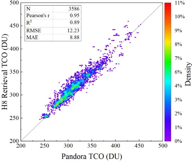 图2 地基Pandora数据验证静止卫星TCO反演精度