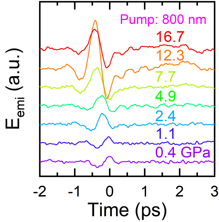 近期,大湾区空天信息研究院(大湾区院)与中国科学院合肥物质科学研究院固体所计算物理与量子材料研究部、北京高压科学研究中心等团队合作,利用搭建的高压太赫兹发射光谱系统,系统研究高压下半导体GaTe的太赫兹发射动力学和光电导动力学,观测到高压下发射强度的巨大增强以及发射时间的前移现象。