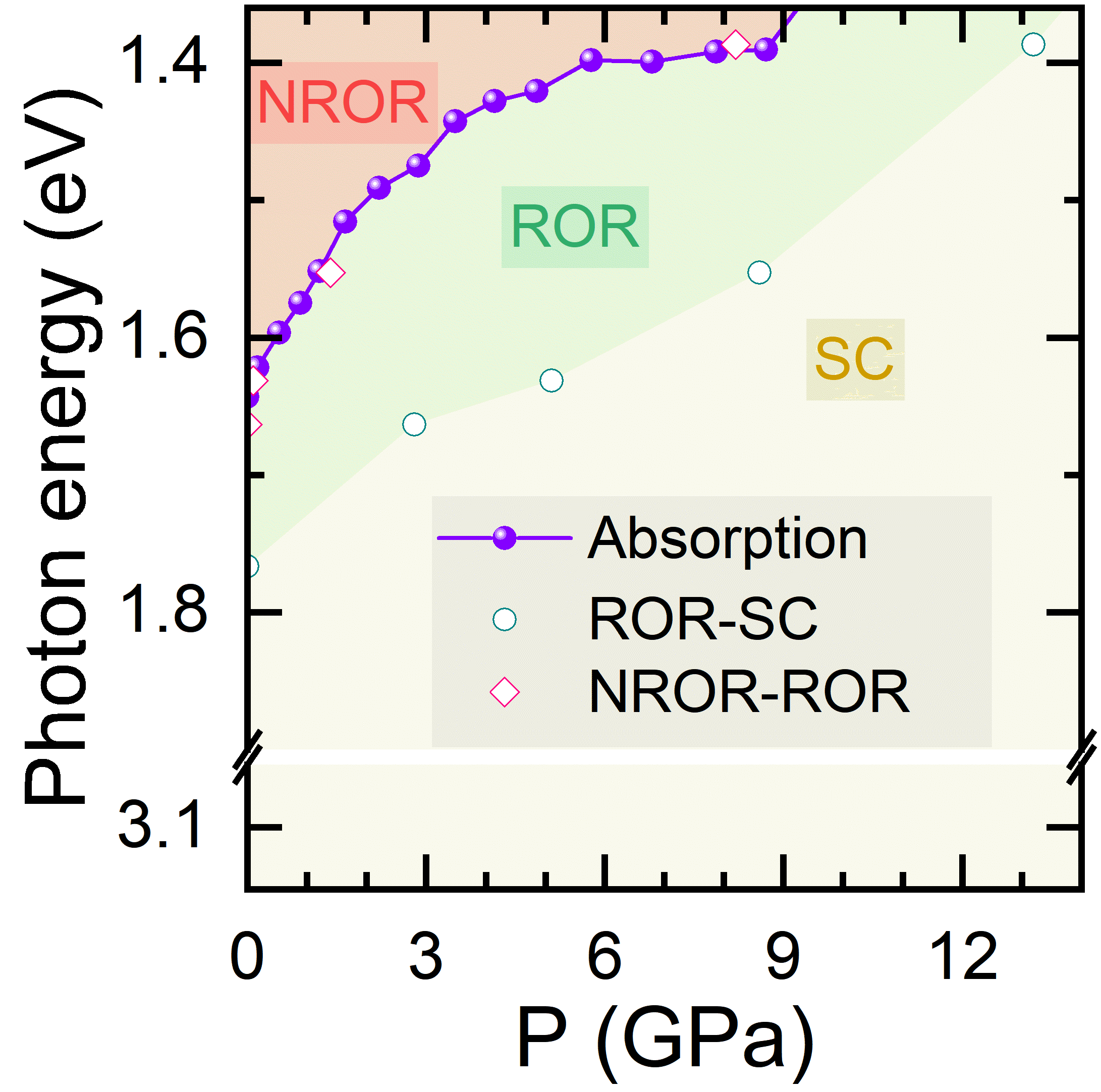 实验观察到太赫兹辐射强度显著增强,达到常压条件下的13倍。随着压力增大,光整流区域出现超过100 fs的相位左移,并最终在光电流发射过程中消失,表明瞬态电流发射过程先于光整流发生。结合经典非谐振子模拟与第一性原理计算,研究证实太赫兹辐射的增强及光整流过程中的时间偏移,源于材料固有共振频率和初始净电荷密度在压力作用下的改变。