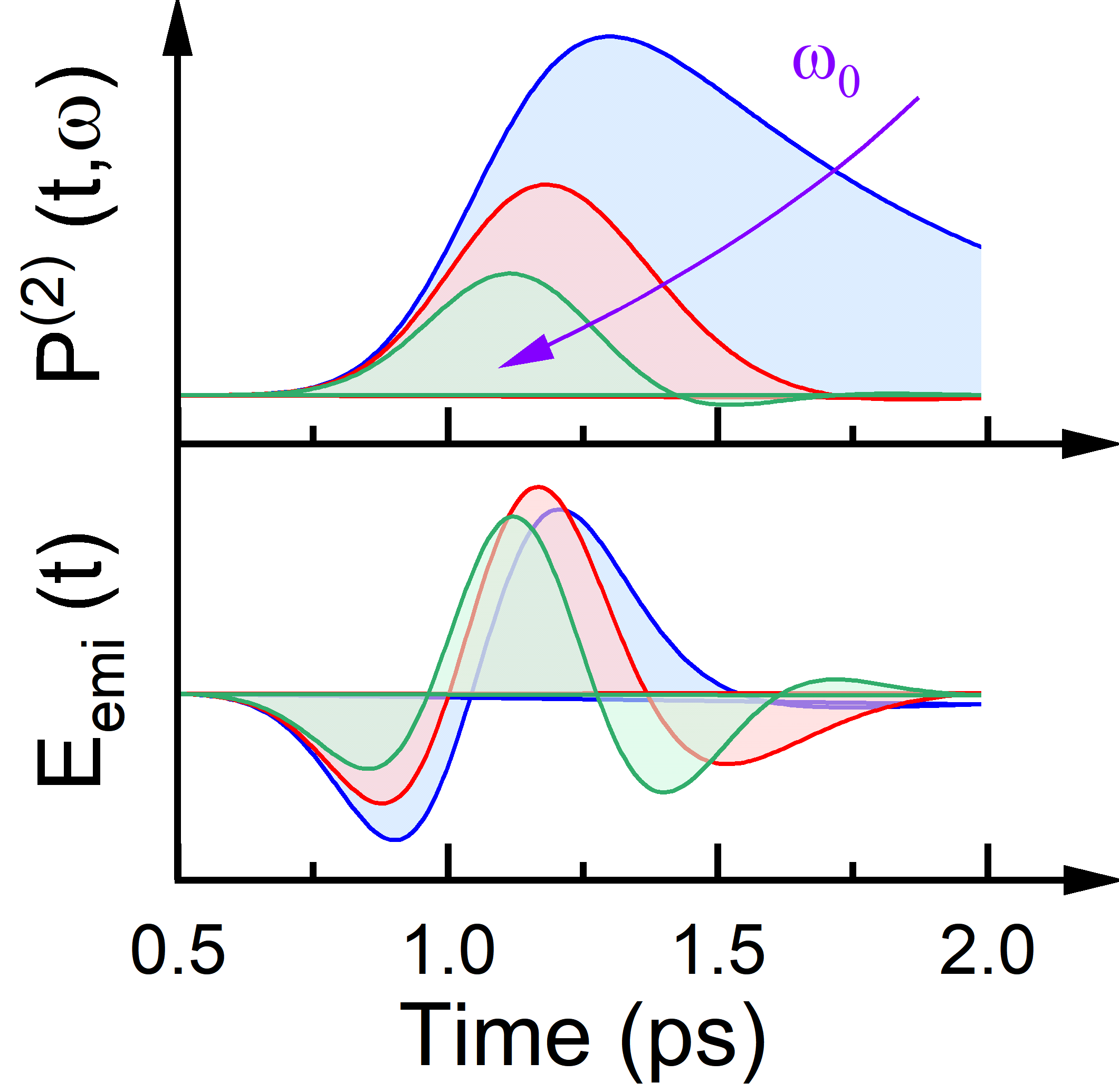 由超快激光脉冲驱动的高效太赫兹源是超快光谱和成像的应用的重要研究方向。一般情况下,太赫兹脉冲是由电子和晶格对入射激光脉冲的电场立即响应而发射的。因此,在时域上对比不同过程之间的超快响应,对于优化太赫兹发射效率和带宽至关重要。