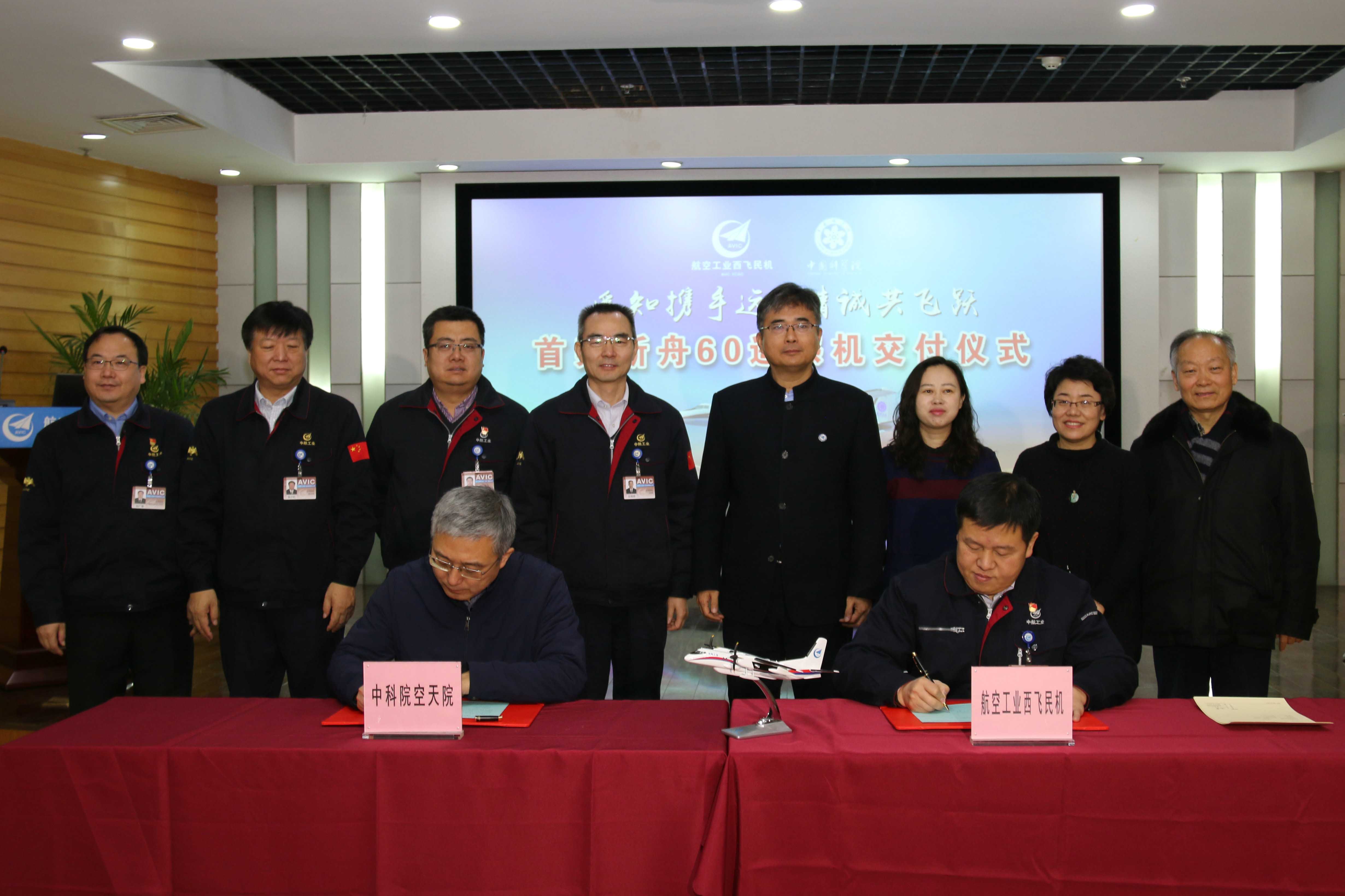 2018年12月29日,中国科学院空天信息研究院(以下简称“空天院”)与中航西飞民用飞机有限责任公司(以下简称“西飞民机”)在阎良举行了航空遥感系统首架新舟60遥感机交付仪式。空天院院长吴一戎、副院长丁赤飚及部分研制人员代表参加了交付仪式。西飞民机副总工程师吕景全主持仪式。