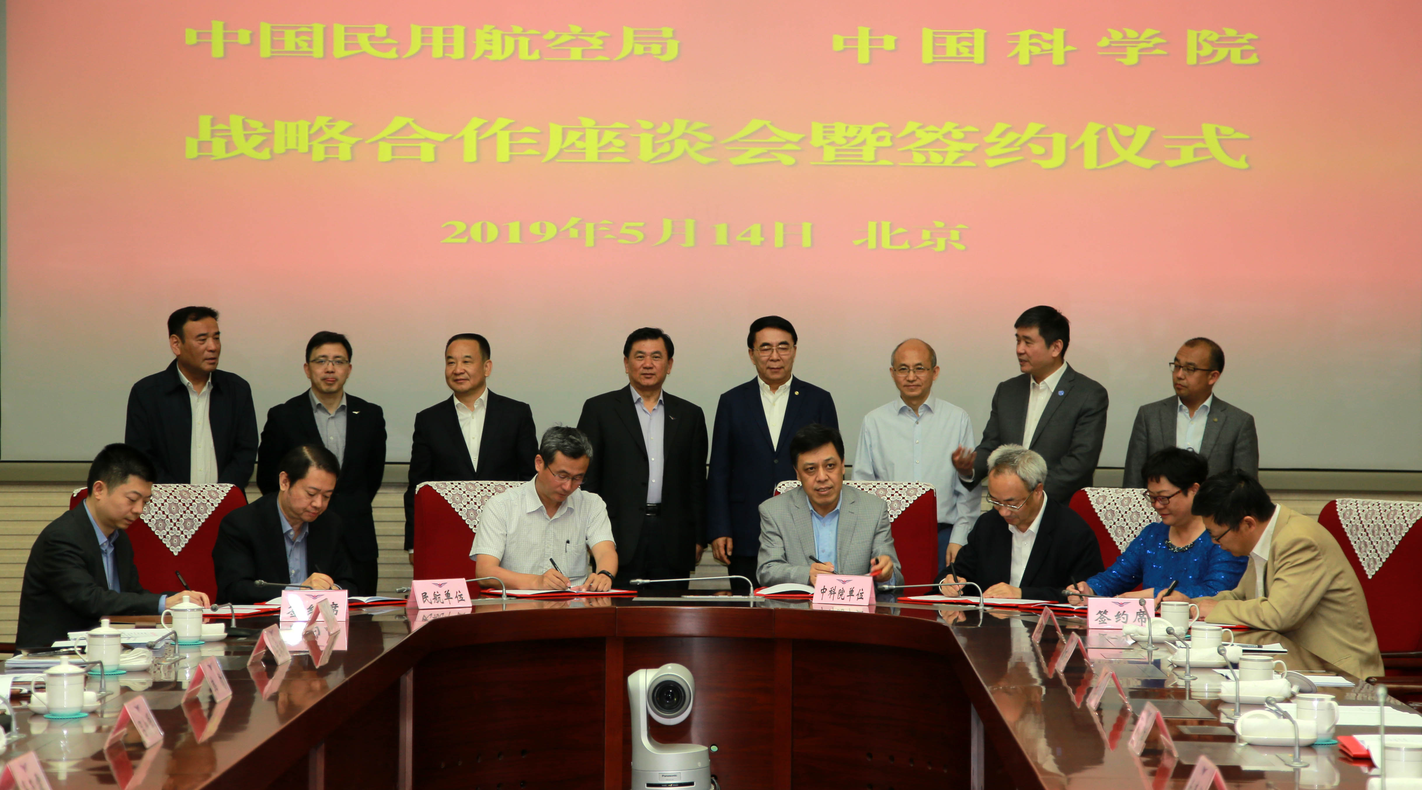 5月14日,中国科学院与中国民用航空局举行战略合作座谈会暨签约仪式。在中国科学院院长、党组书记白春礼,中国民用航空局局长、党组书记冯正霖等领导的见证下,中国科学院空天信息研究院(以下简称“空天院”)党委书记蔡榕和中国民航科学技术研究院(以下简称“航科院”)院长黄荣顺分别代表双方签署战略合作协议。