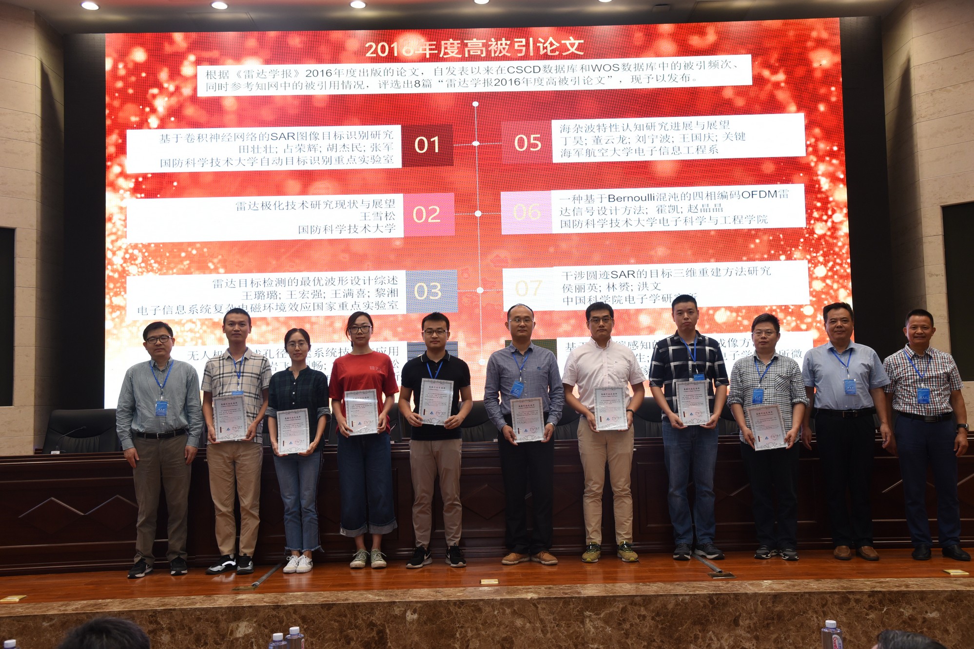 在学报颁奖仪式中,吴一戎、成涛、中国科学院院士金亚秋、中国工程院院士何友等与会嘉宾为10位“雷达学报优秀审稿专家”、8位“雷达学报高被引论文”作者以及10位“优秀编委”颁奖。
