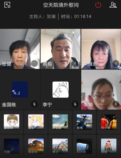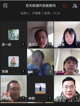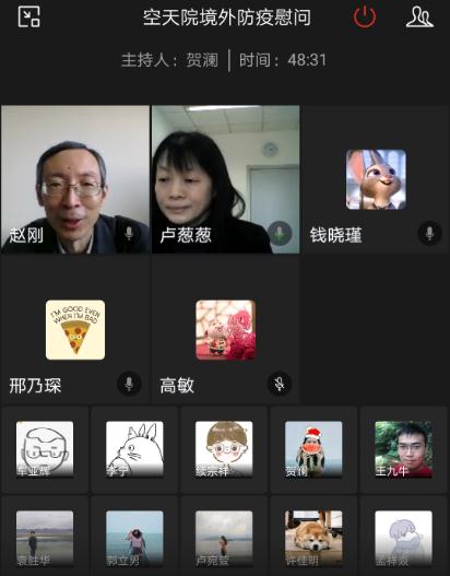 “空天院一直和你们在一起,祖国是你们最大的依靠。我们相信,人类终将战胜疫情,迎来曙光。“视频连线中,空天院领导十分关心目前身在海外的职工和学生的健康、工作和生活情况。在了解到他们的健康状况都较好、物资储备较为充足时,空天院领导表达了由衷的欣慰之情,希望他们在当地继续做好防护,与相近的同事和同学建立沟通和联系,并通过远程方式积极参与工作、完成学业。空天院领导也介绍了国内目前已经看到即将取胜的防疫形势,介绍了空天院目前开展工作的情况,表示相信人类终将战胜疫情,鼓励大家保持积极乐观的情绪,按时作息、锻炼身体,期待很快与大家一起工作和学习。教育处和人事处负责人还就留学生、访问学者的相关安排及工作原则进行了解释和说明。