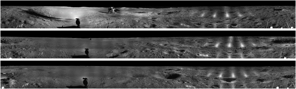 利用“玉兔二号”月球车全景相机拍摄的图像制作的着陆区360度全景图像