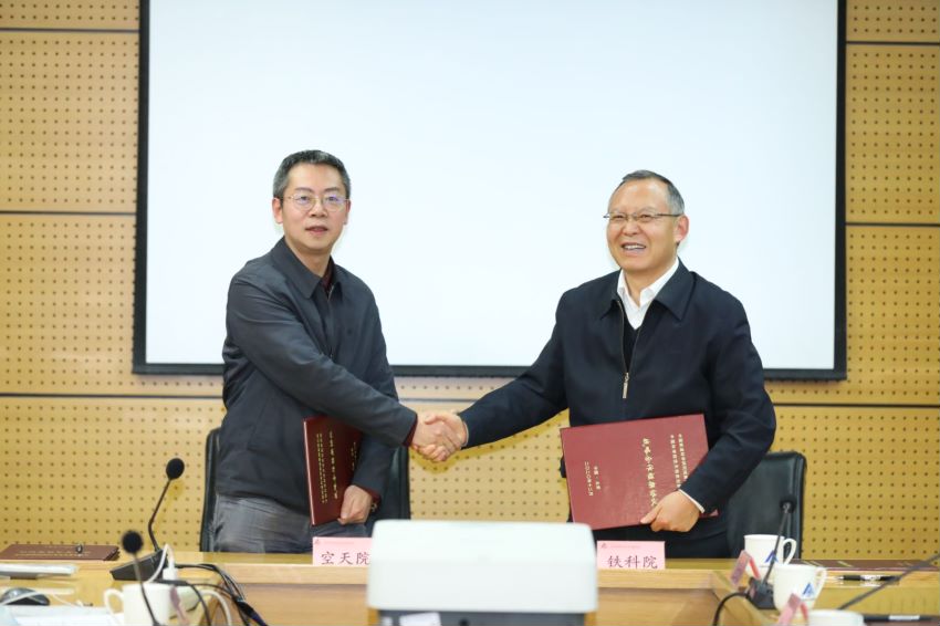 12月18日下午,中科院空天信息创新研究院(以下简称“空天院”)与中国铁道科学研究院集团有限公司(以下简称“铁科院”)举行战略合作座谈会。空天院副院长付琨、铁科院副总经理牛道安出席会议并代表双方签署战略合作协议,中科院科技促进发展局高技术处副处长秦承虎参会。会议由空天院科技促进发展处处长滕启治主持。