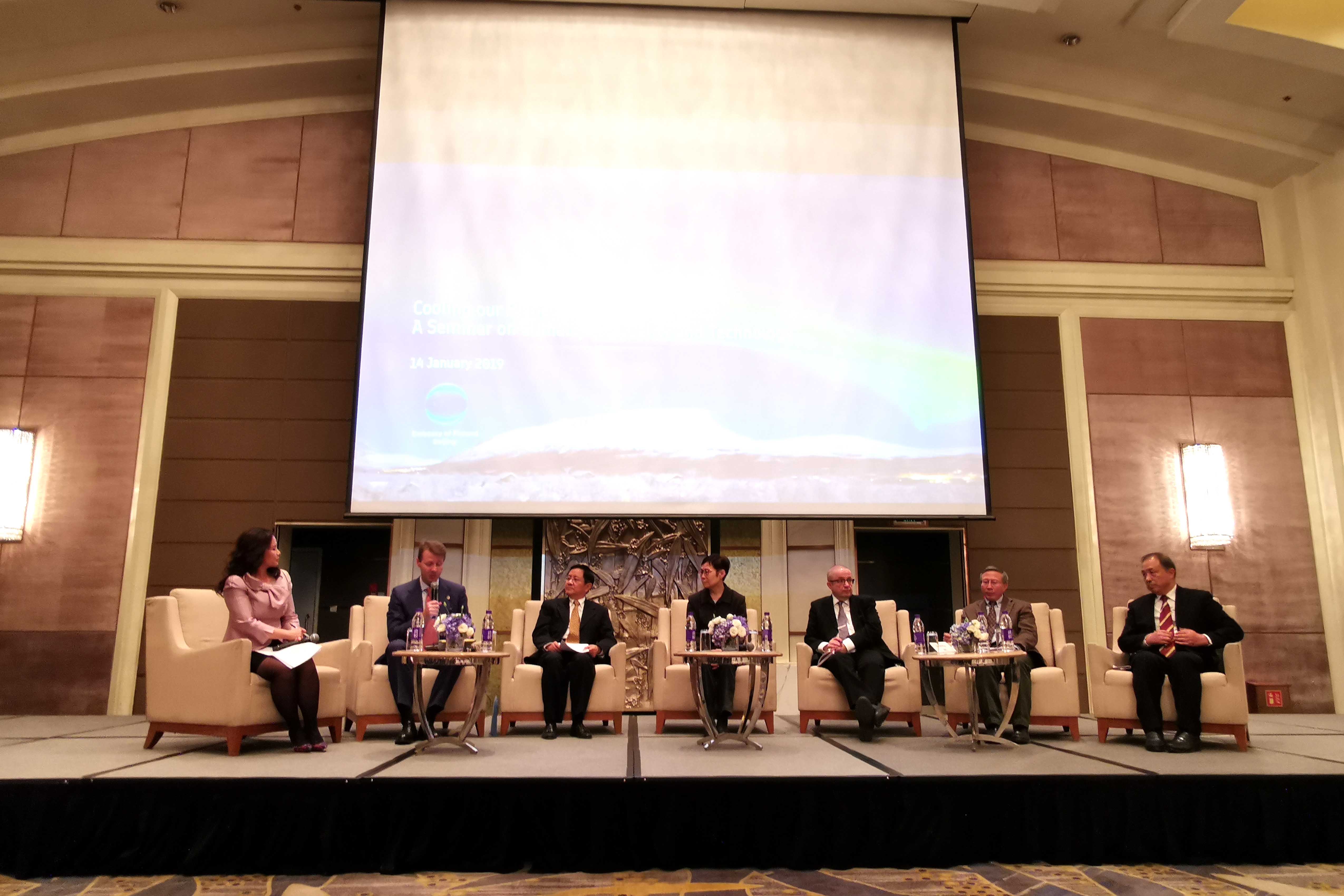 1月14日,中芬气候变化与空气质量高级别研讨会在京召开。芬兰总统绍利·尼尼斯托和生态环境部部长李干杰出席研讨会并作主旨发言。中科院空天信息研究院郭华东院士,芬兰科学院院士、中科院外籍院士Markku Kulmala教授,诺基亚董事长Risto Siilasmaa先生,世界资源研究所中国区首席代表李来来博士,联合国环境署驻华首席代表涂瑞和先生,中国外交部北极事务特别代表高风先生 6人应邀出席专题研讨。