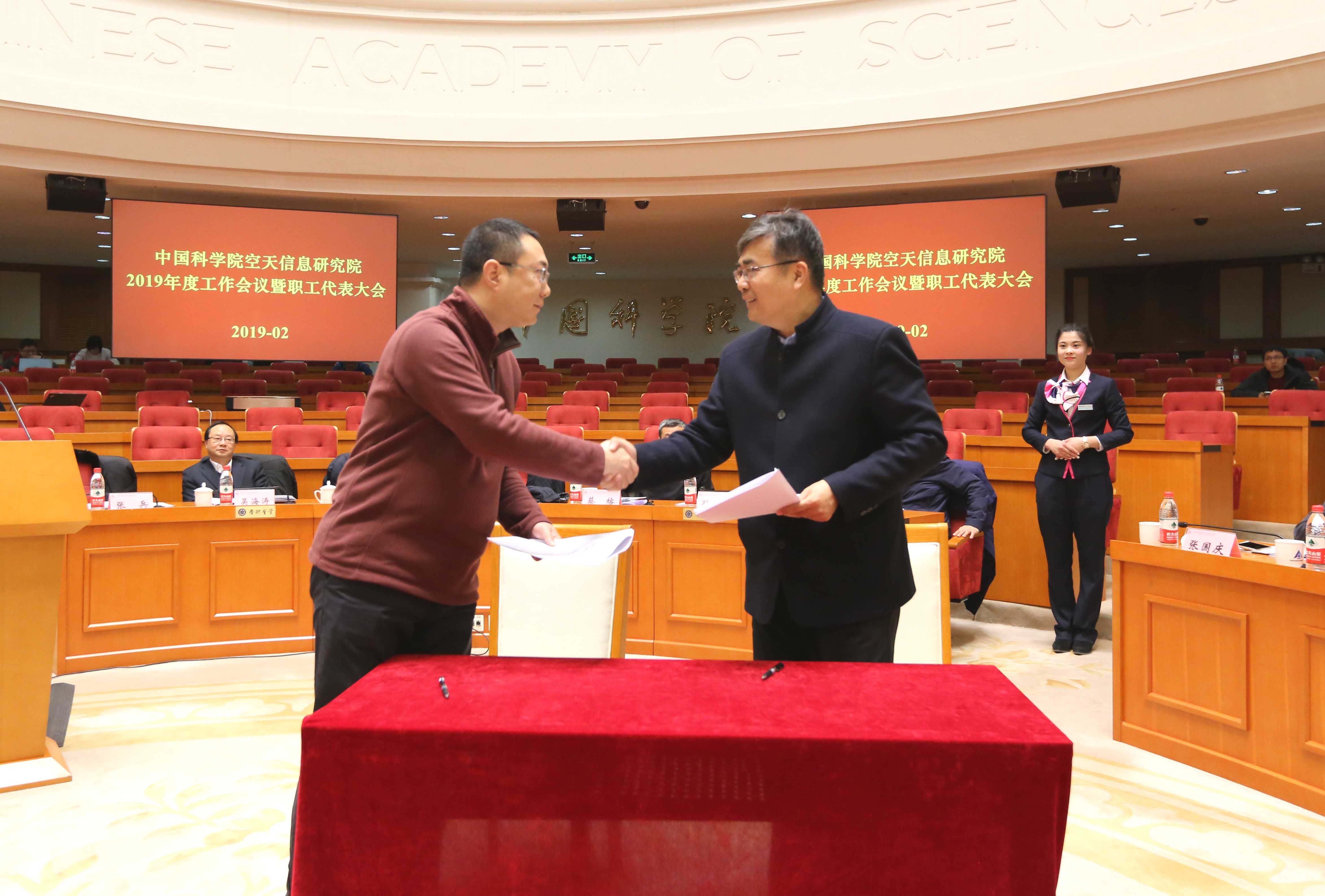 此外,大会对空天院2018年度优秀部门、优秀职工及优秀分工会、优秀协会、优秀工会干部进行了表彰;举行了2019年度管理目标责任书和党风廉政建设责任书签署仪式。
