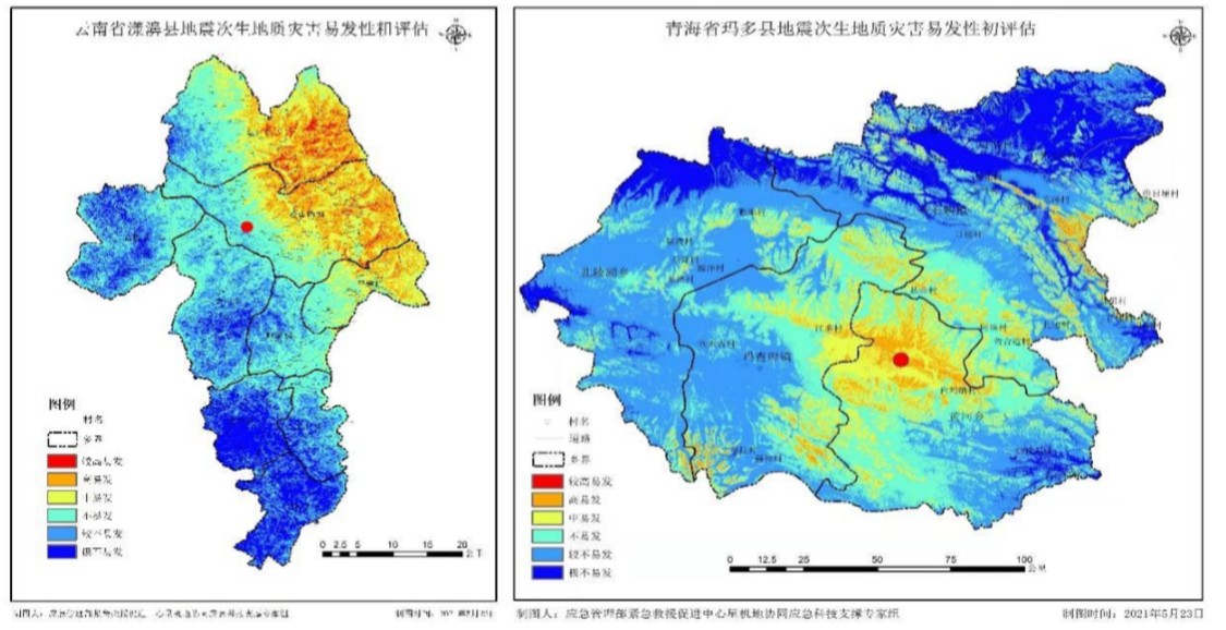 5月21日漾濞 6.4 级地震、22 日玛多 7.4 级地震灾区次生地质灾害初评估