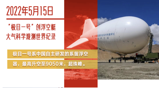 升空高度超过世界最高峰珠穆朗玛峰,到达海拔9050米的高度,创造浮空艇大气科学观测的世界纪录,被新华社、新闻联播、人民日报等官方媒体权威认证为2022度十大国之重器之一。