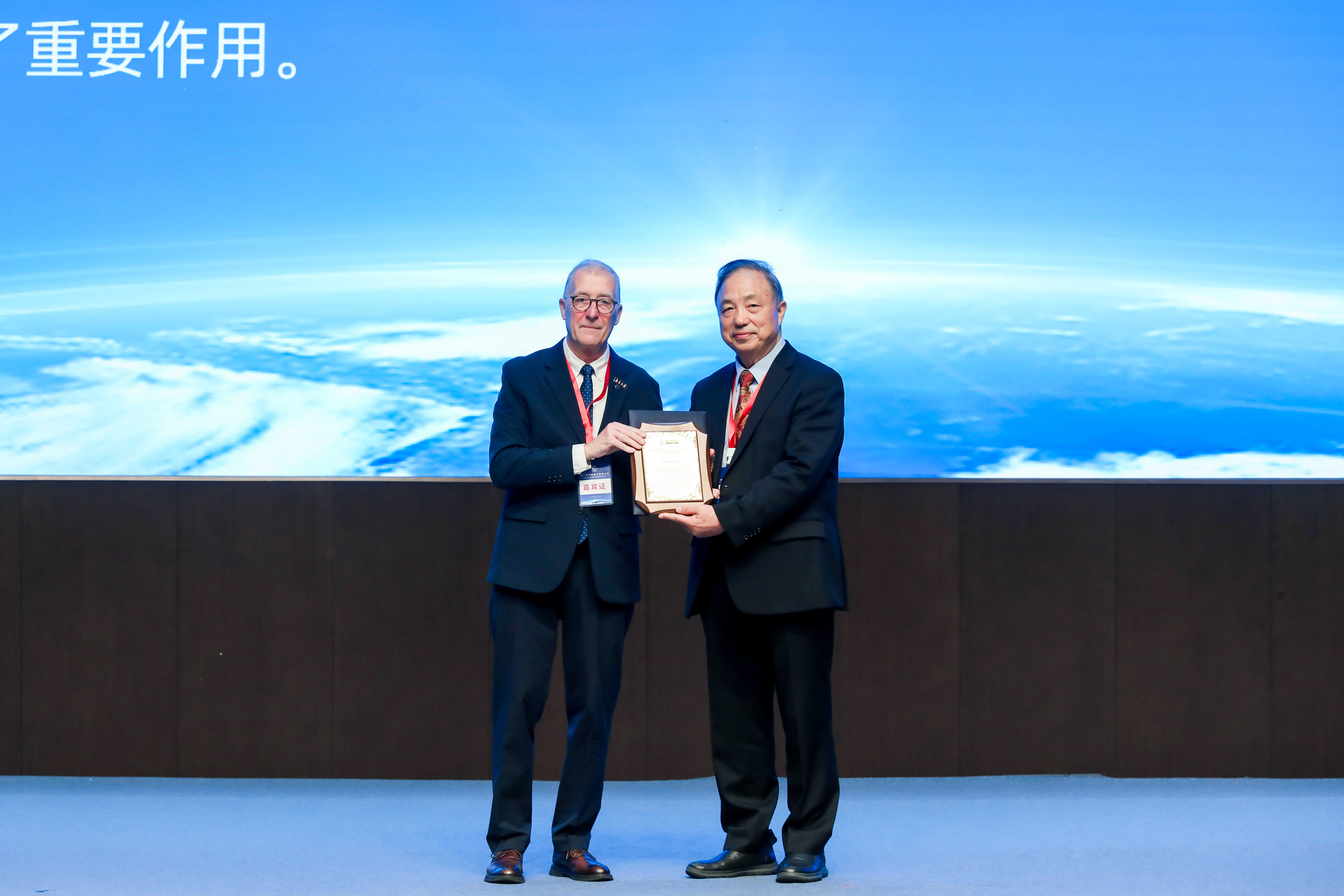 迈克尔·梅多斯向郭华东院士颁发“数字地球杰出科技成就奖”