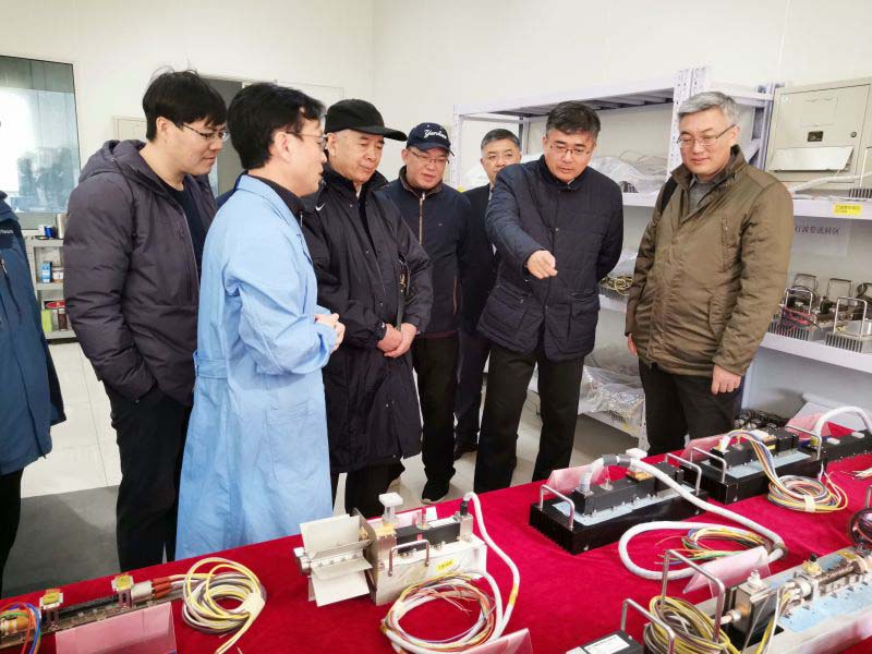 在微波器件与系统研究发展中心,副主任黄明光和研究员肖刘分别汇报了Ka波段和Ku波段空间行波管的研制进展和产品应用情况。对于空天院空间行波管放大器近年来的快速发展,艾长春给予了高度肯定。在产品调测现场,黄金生详细询问了产品进度及产品性能指标情况,对配套产品的质量及进度表示满意,并提出了后续潜在的产品需求,希望空天院行波管放大器对标国外产品,继续提高产品性能指标和可靠性,尽早实现进口产品的全面替代工作。