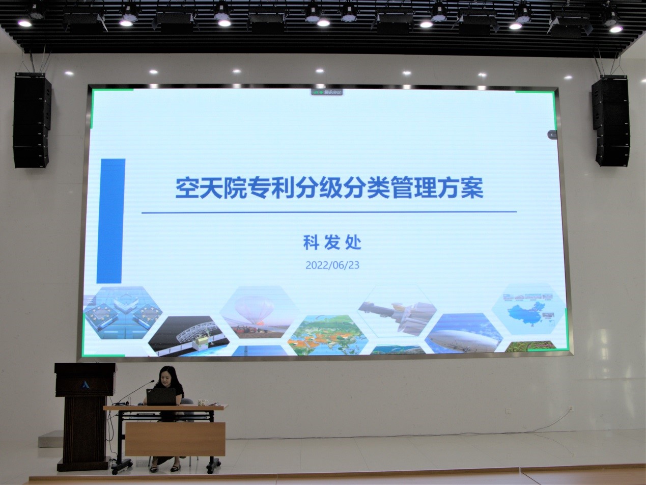 科技促进发展处知识产权主管刘发兰详细介绍了空天院推行专利分级分类管理具体落实措施,解读了新申请专利、有效专利的不同评价方式和指标,并就目前知识产权工作中的问题进行交流解答。